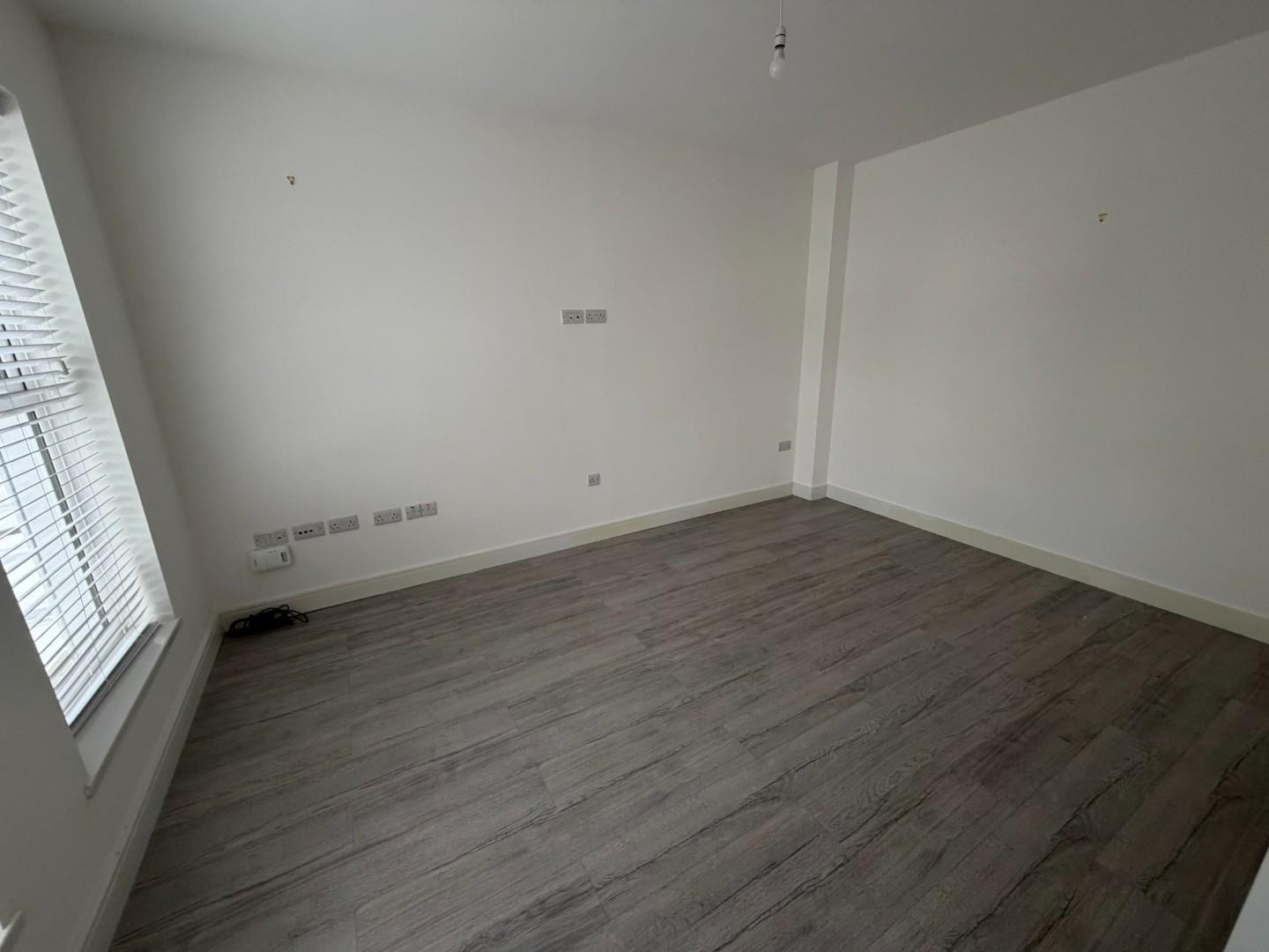 Spacious room with wall mounted TV sockets and Laminate flooring.