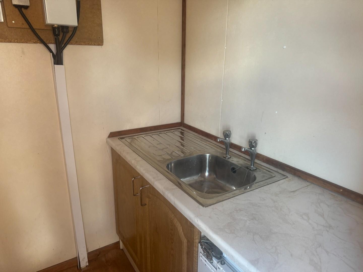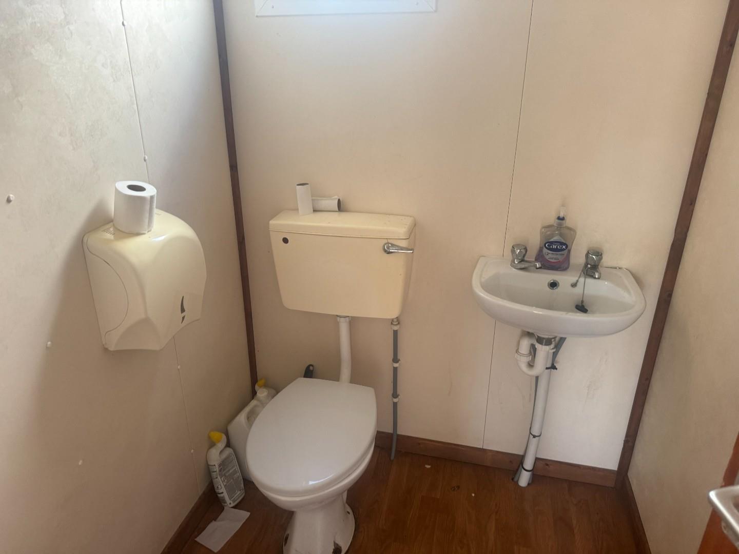 This secure 1/2 acre yard is fenced and has a portacabin office with light and power . toilet and kitchen facilities
