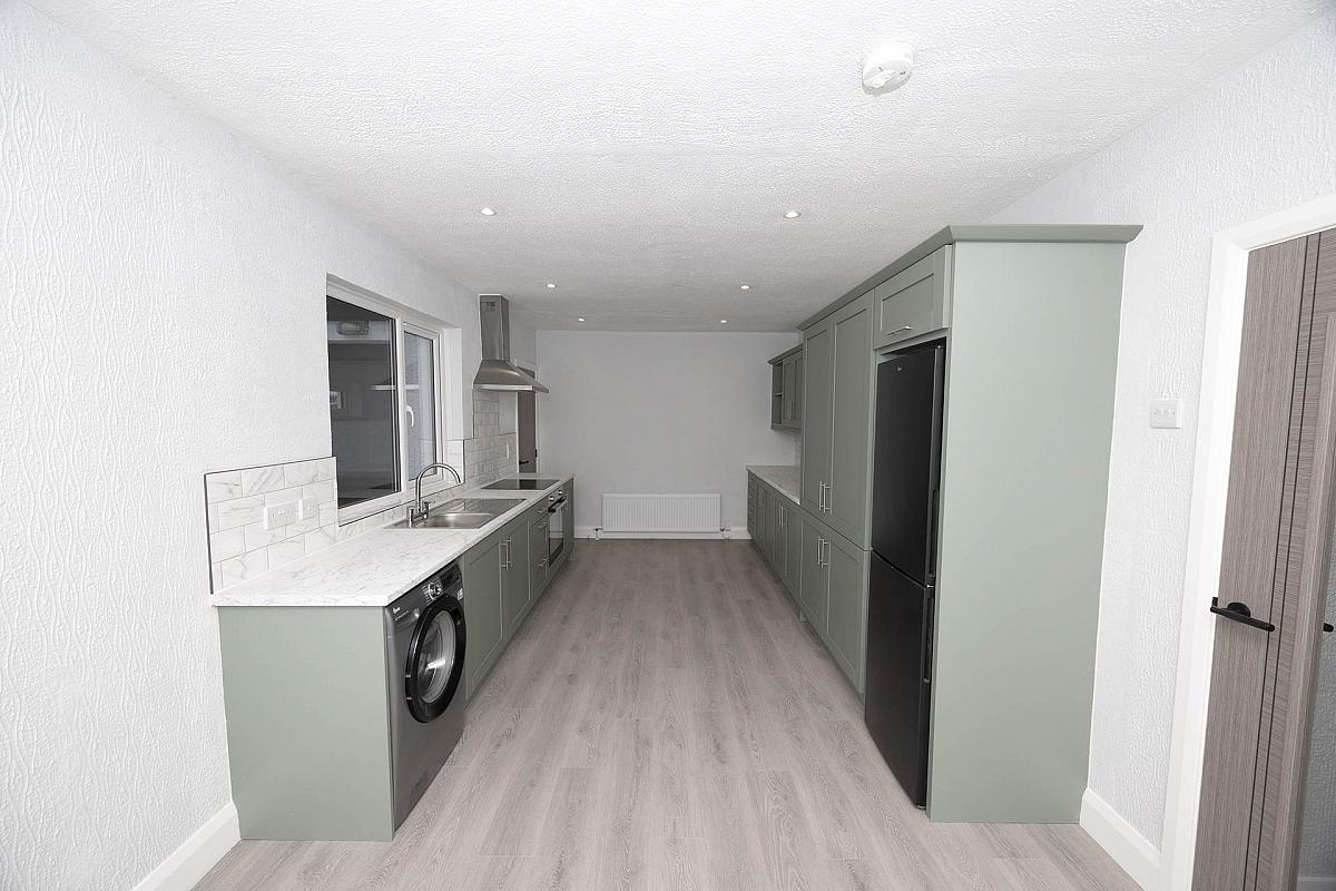 Inside, the home is warm and welcoming. The lounge features laminate flooring and an electric stove, creating a cosy yet contemporary living space. A brand-new, sparkling kitchen offers an abundance of high- and low-level units and modern appliances, making it both practical and stylish. A separate utility room adds valuable everyday functionality.