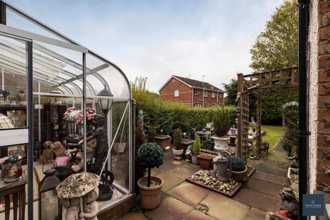 Fully enclosed rear garden. Paved patio area and pathway.