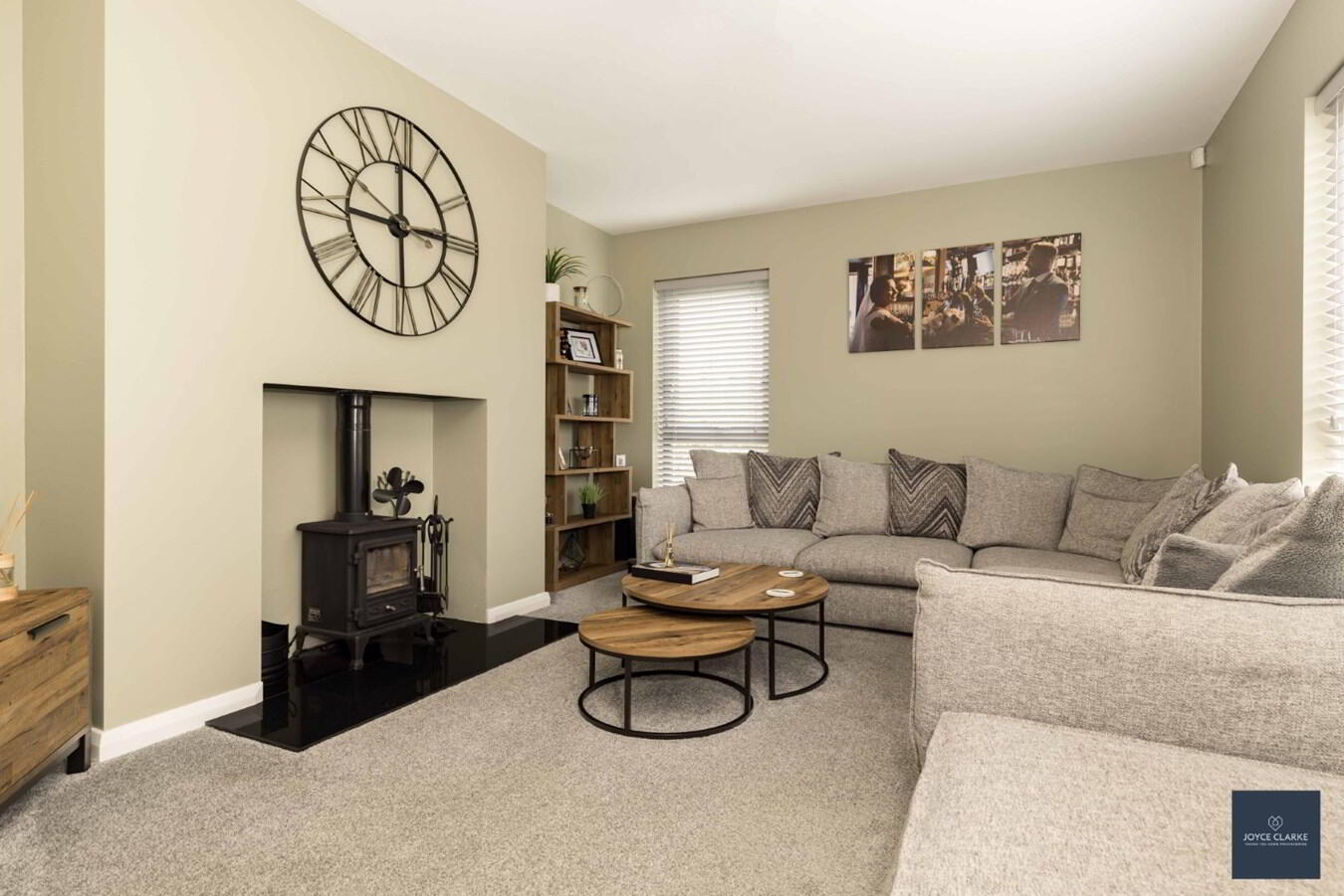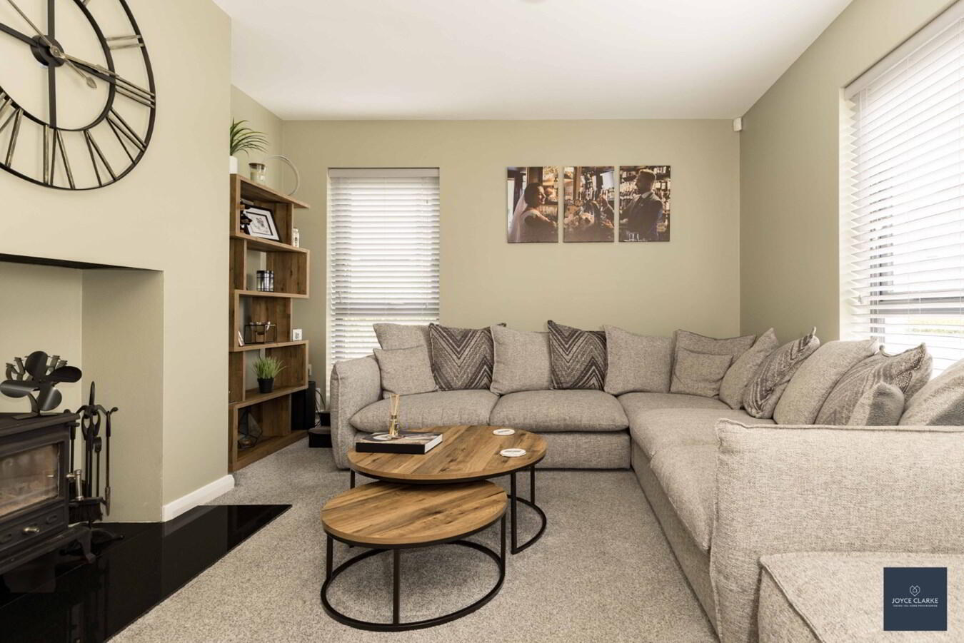 Dual aspect living room. Mutli fuel stove set on tiled hearth. Double panel radiator. TV point.