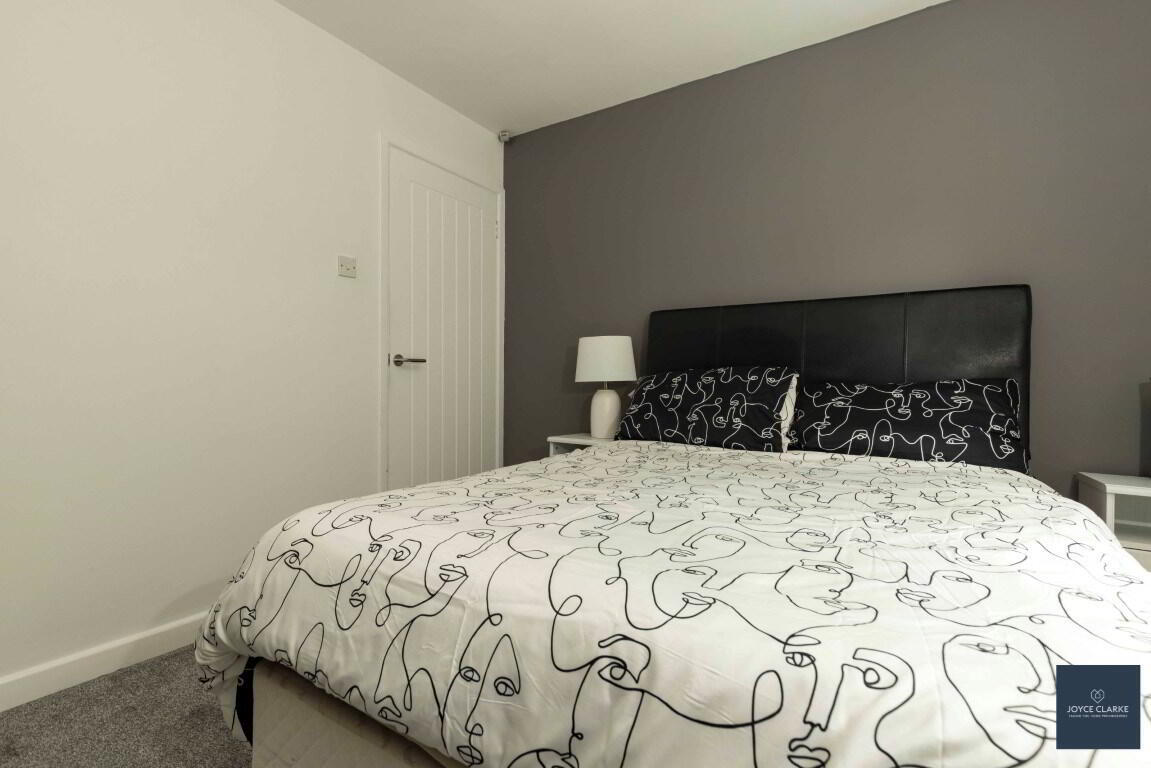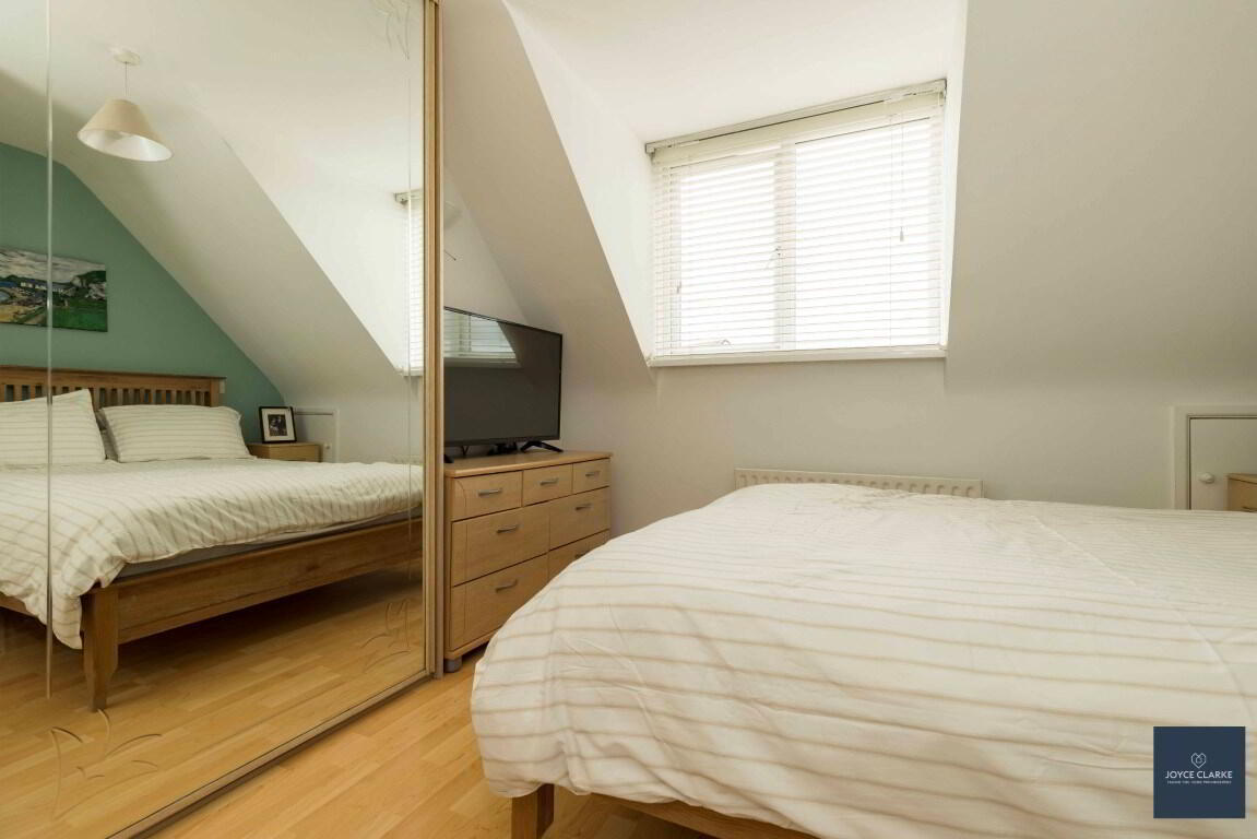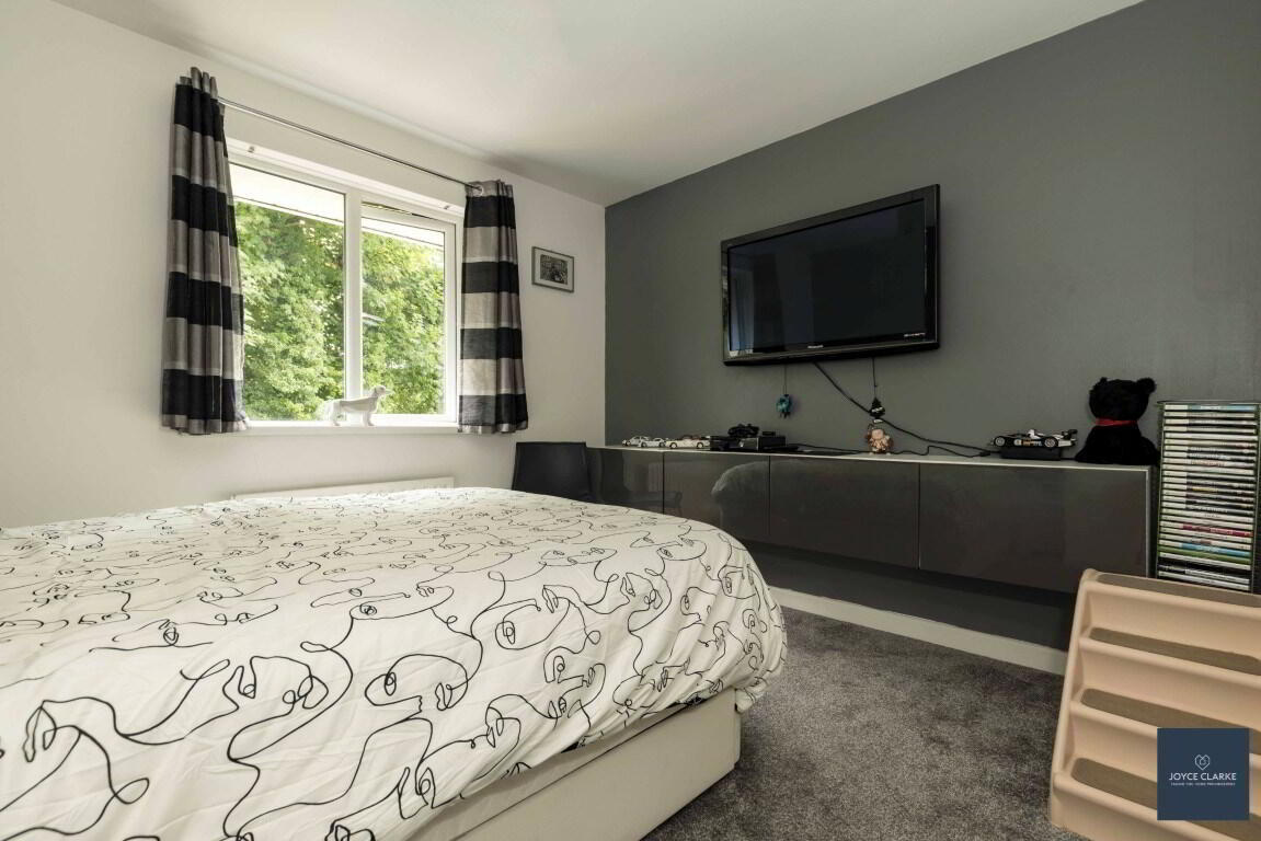 Front aspect double bedroom. Fitted two door slide wardrobe with mirrored door. TV point. Single panel radiator. Wood effect laminate flooring.