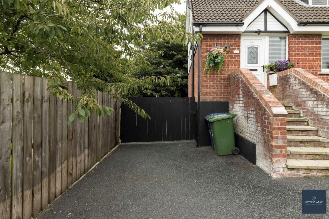 Private enclosed paved patio area. Block built shed with oil burner. Oil tank. Outside tap and lighting. Large gate giving access to driveway. Tarmac area providing secure parking. Spacious lawn area.