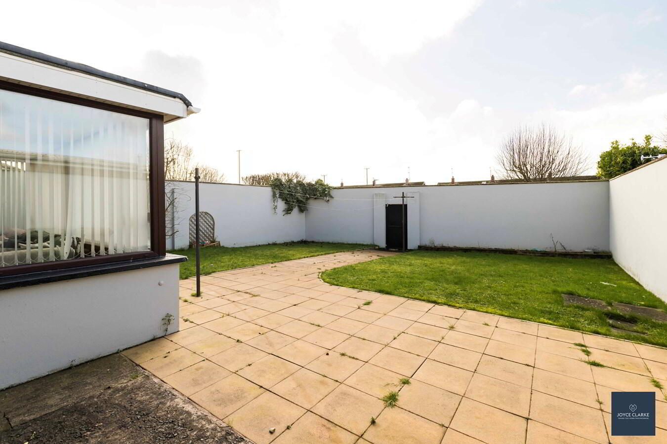 Fully enclosed wall garden with access gates to rear and side. Paved patio and pathway. Oil tank. Outside lighting and tap.