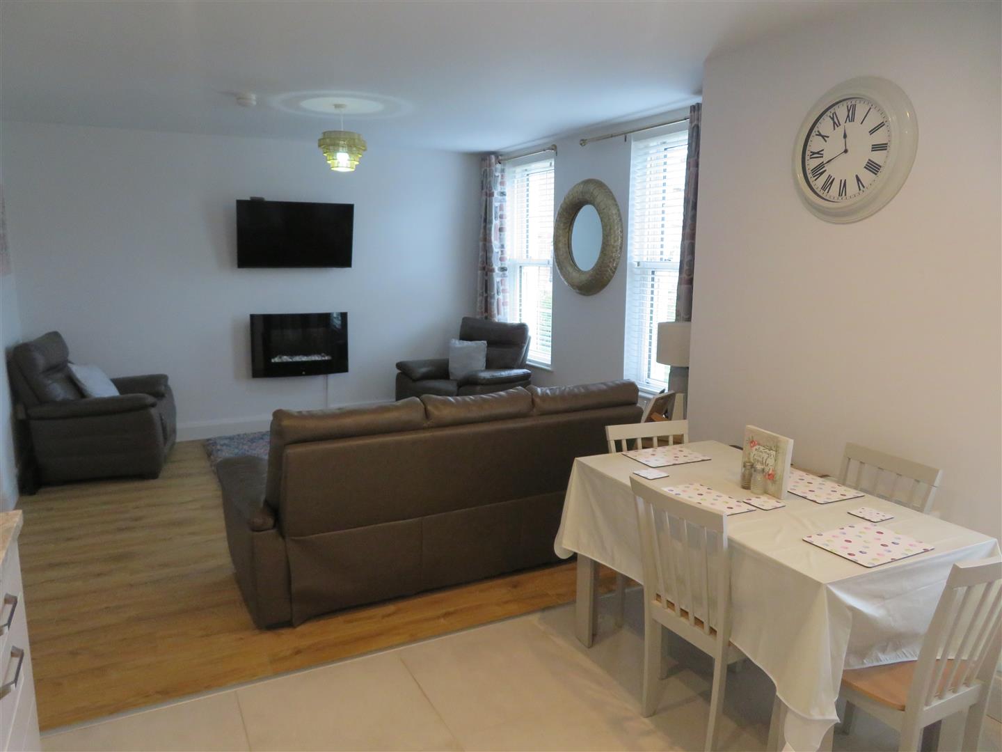 This home offers modern living accommodation with two bedrooms, open plan living/kitchen/dining and bathroom. Residents of the apartment block are also welcome to use the large communal green to the rear of the property. There are also two designated parking spaces, with tarmac finish.