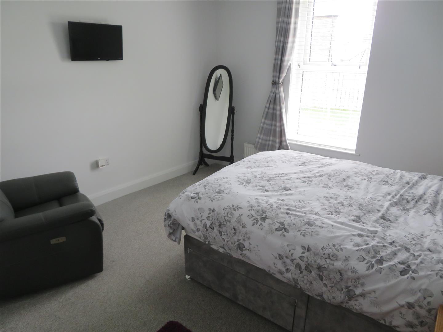 Rear aspect room with carpet flooring.