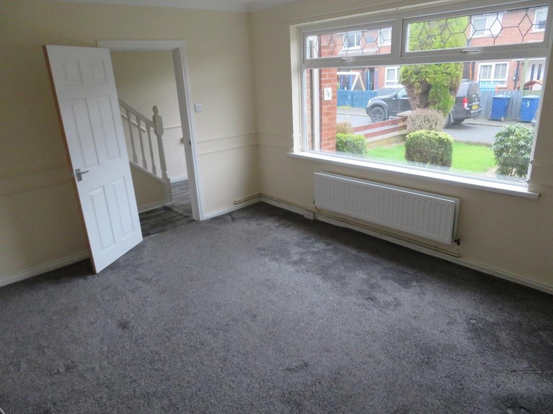 Front aspect room with carpet flooring.