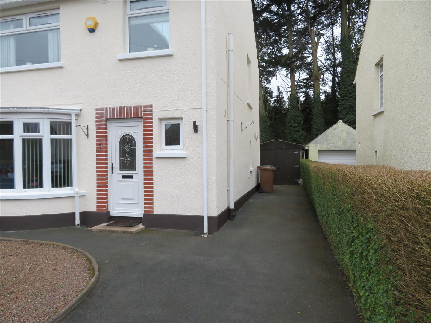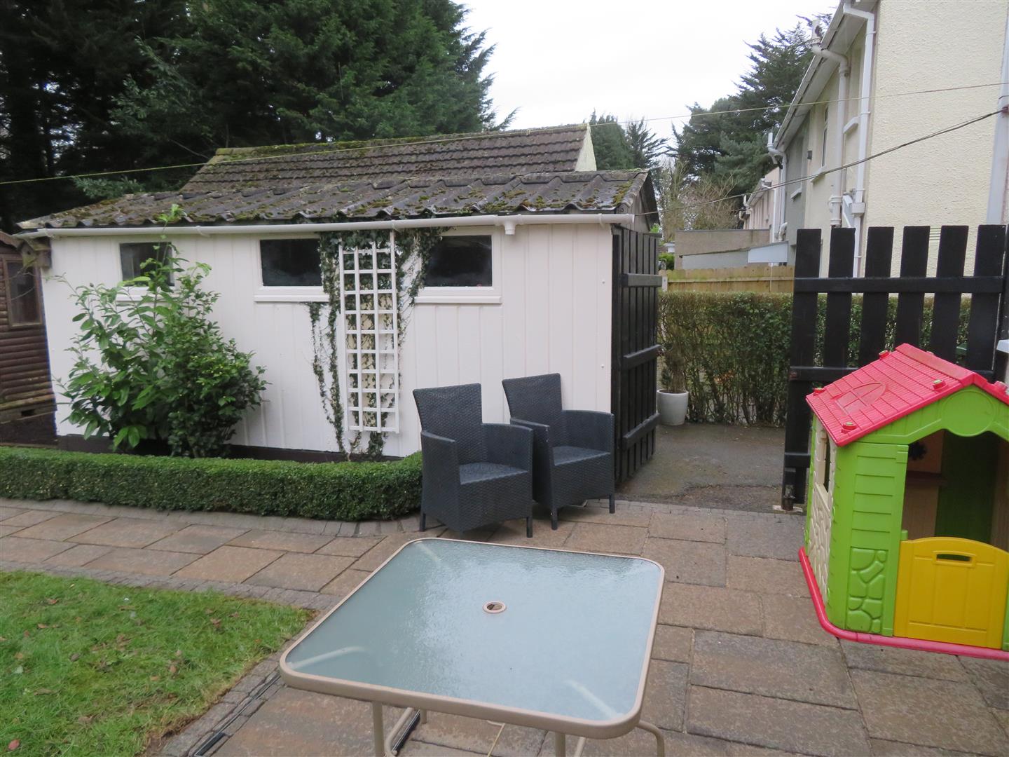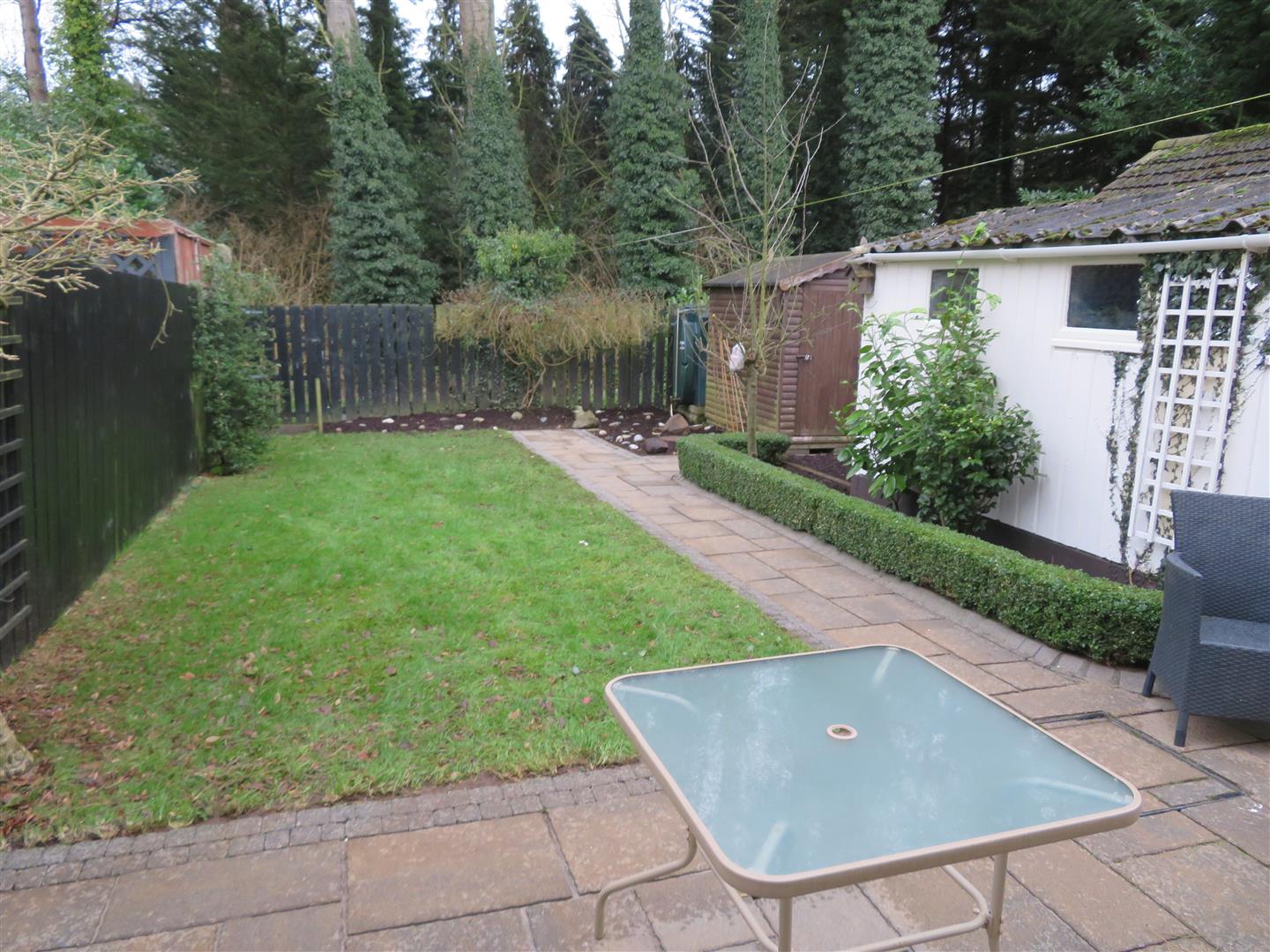 Tarmac driveway and pebble bed to front of house. Private mature rear garden with spacious patio area, lawn and flower beds.