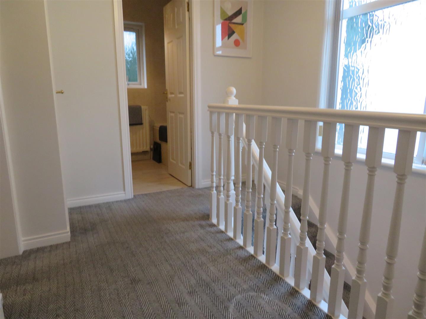 Carpet flooring on stairs and landing, built in hot press and access to fully floored roof space.