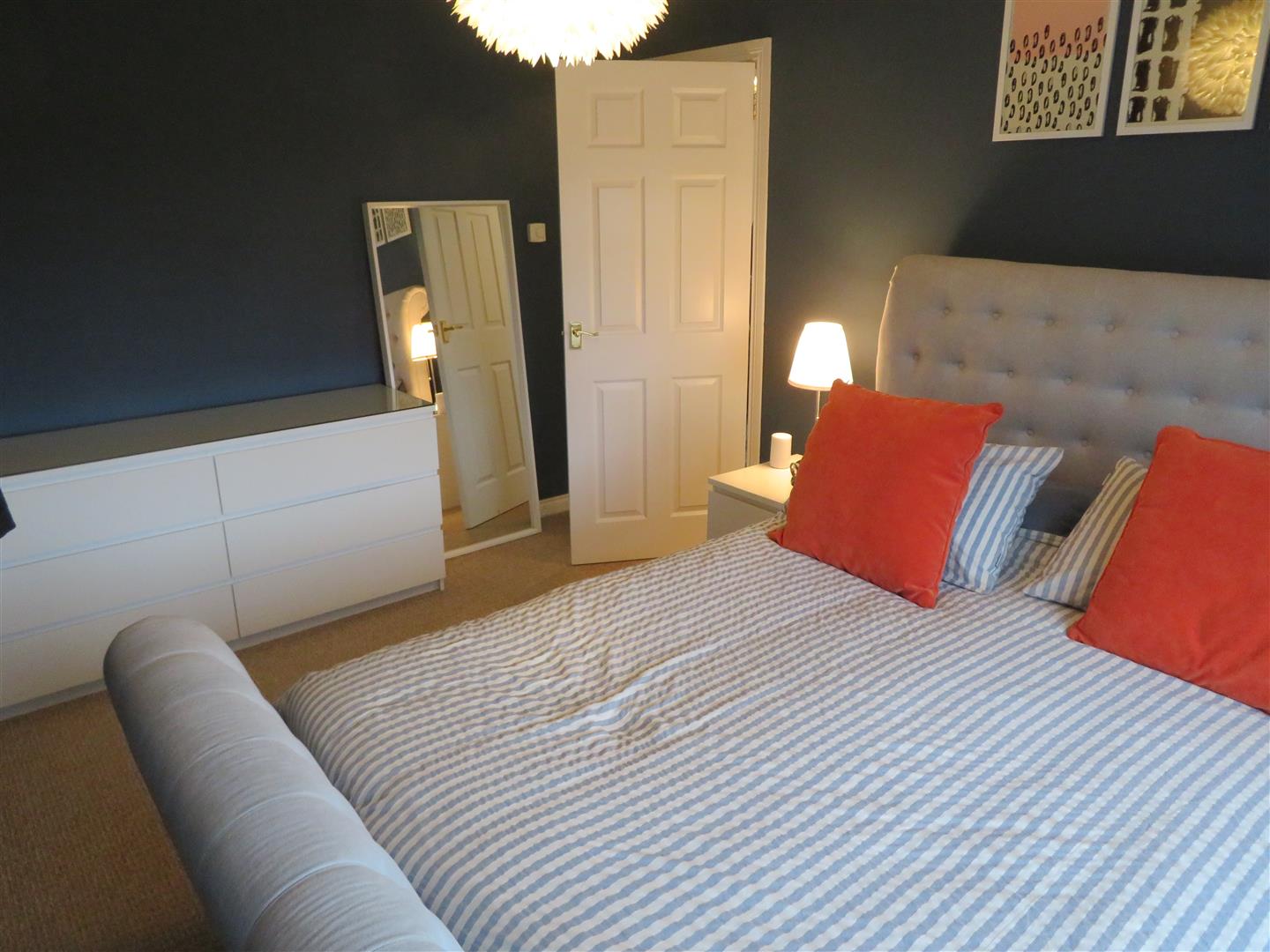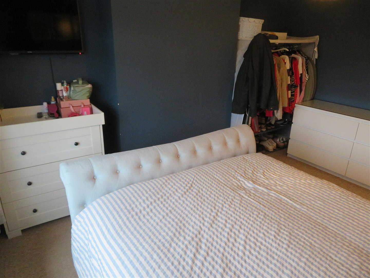 Rear aspect double bedroom with carpet flooring.