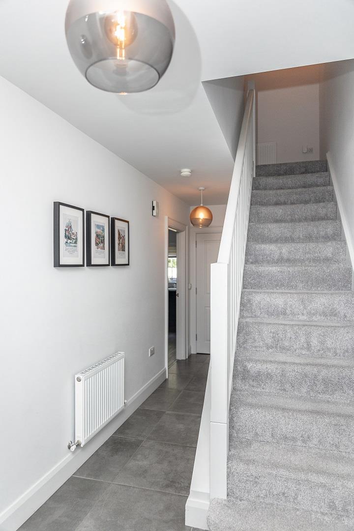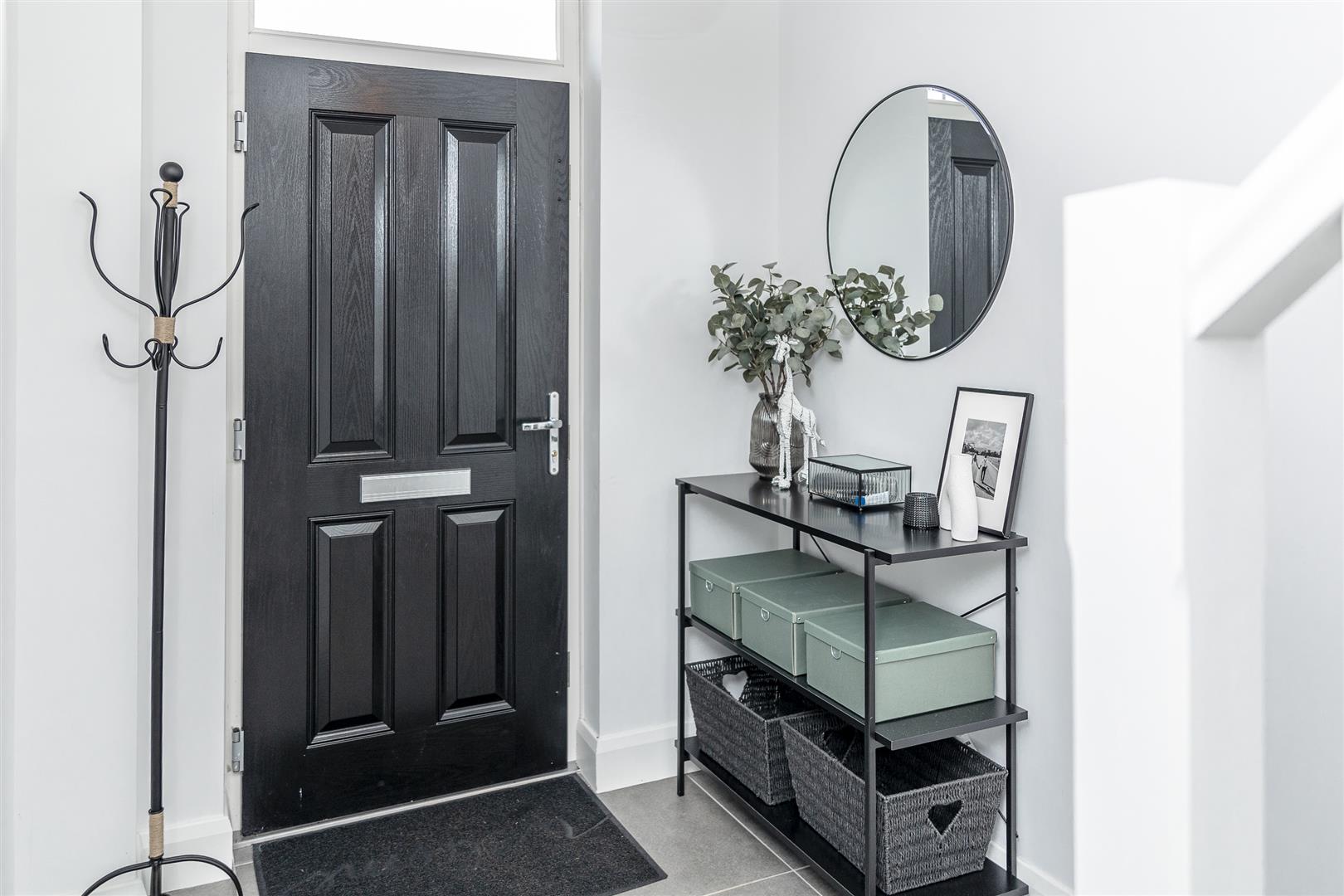 Accessed via composite front door, tiled flooring and built in storage under stairs.