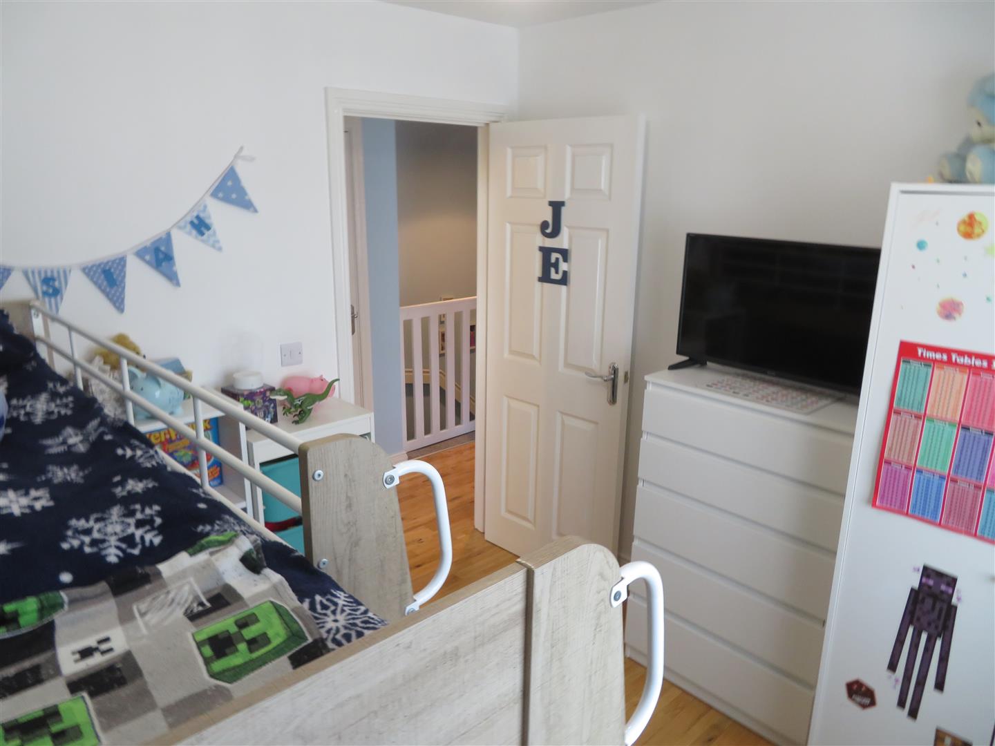 Side aspect single bedroom with solid wood flooring.