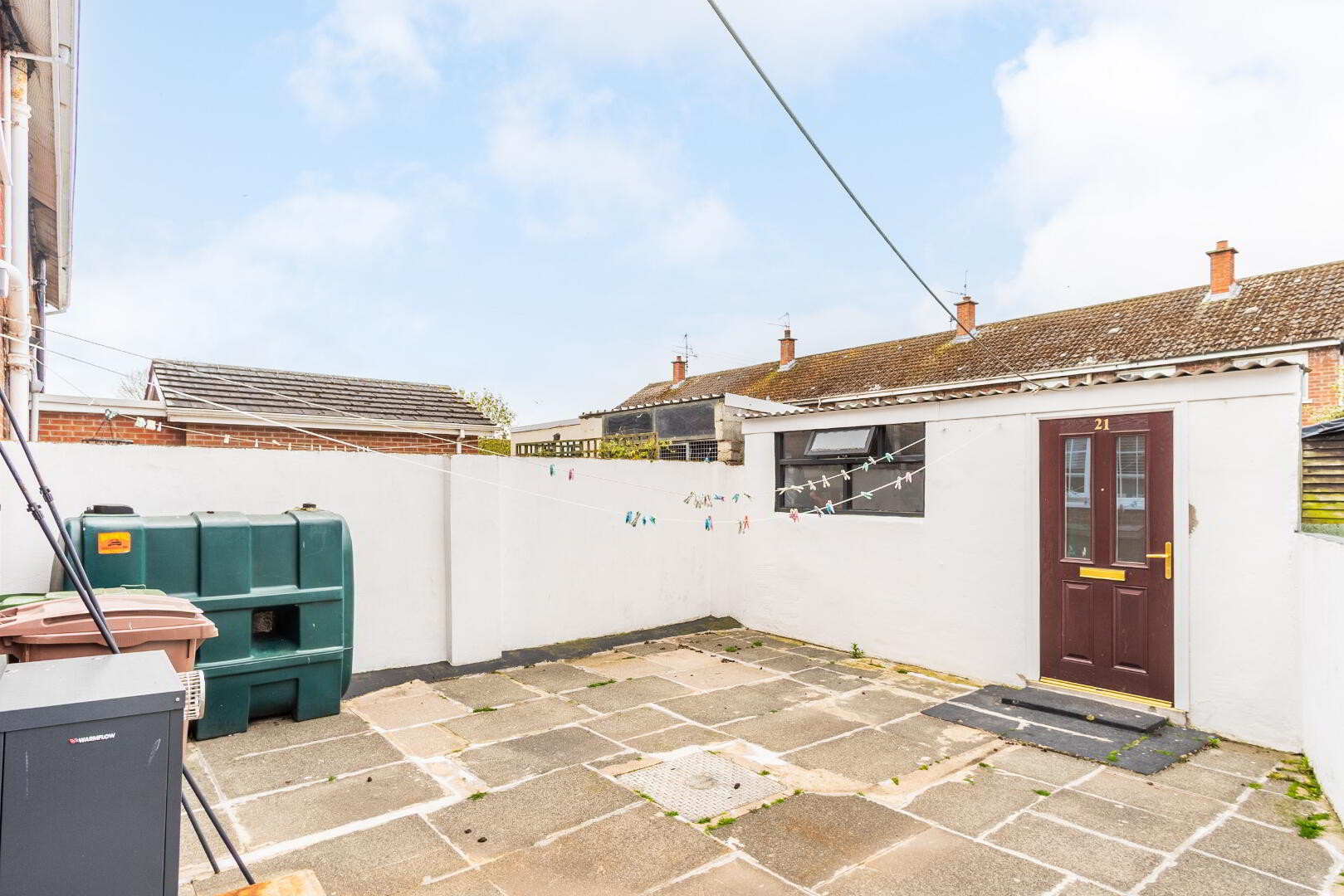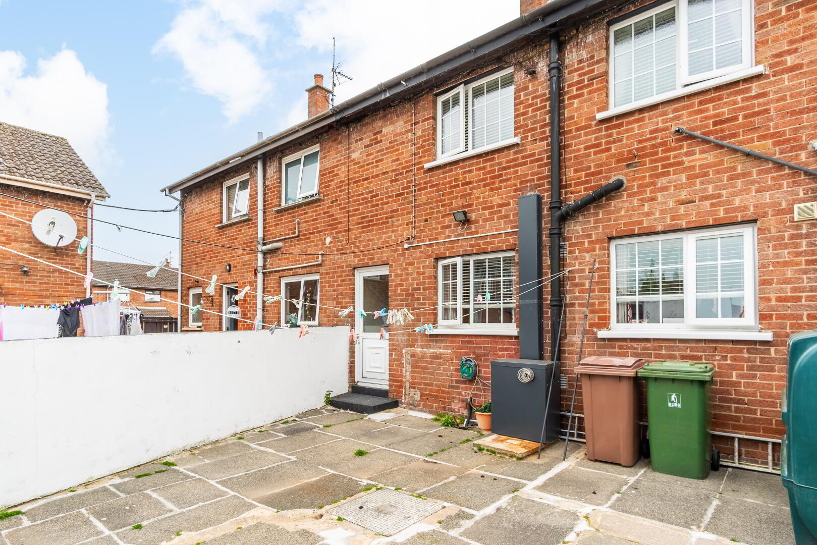 Rear garden fully paved and enclosed with block outbuilding. Front garden paved and enclosed.