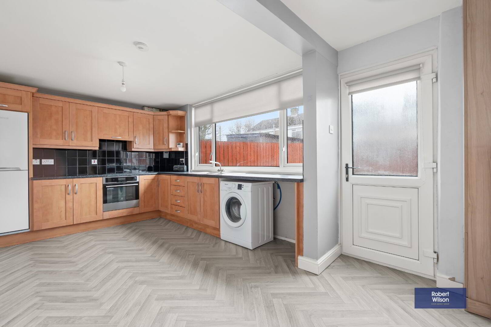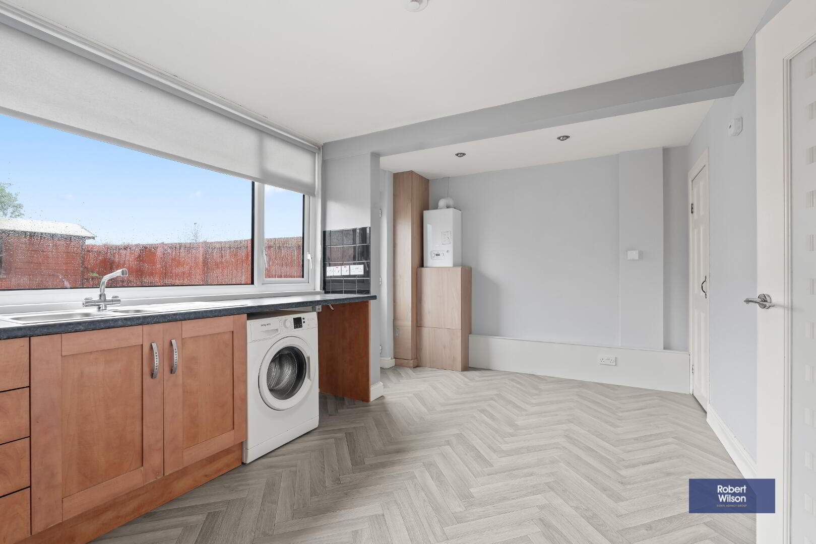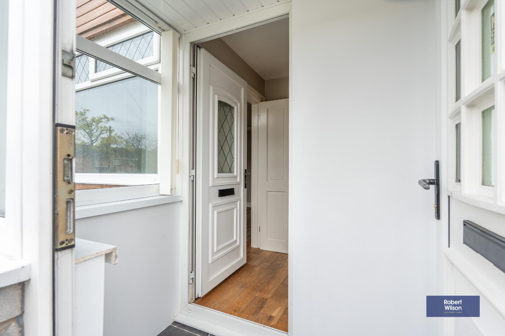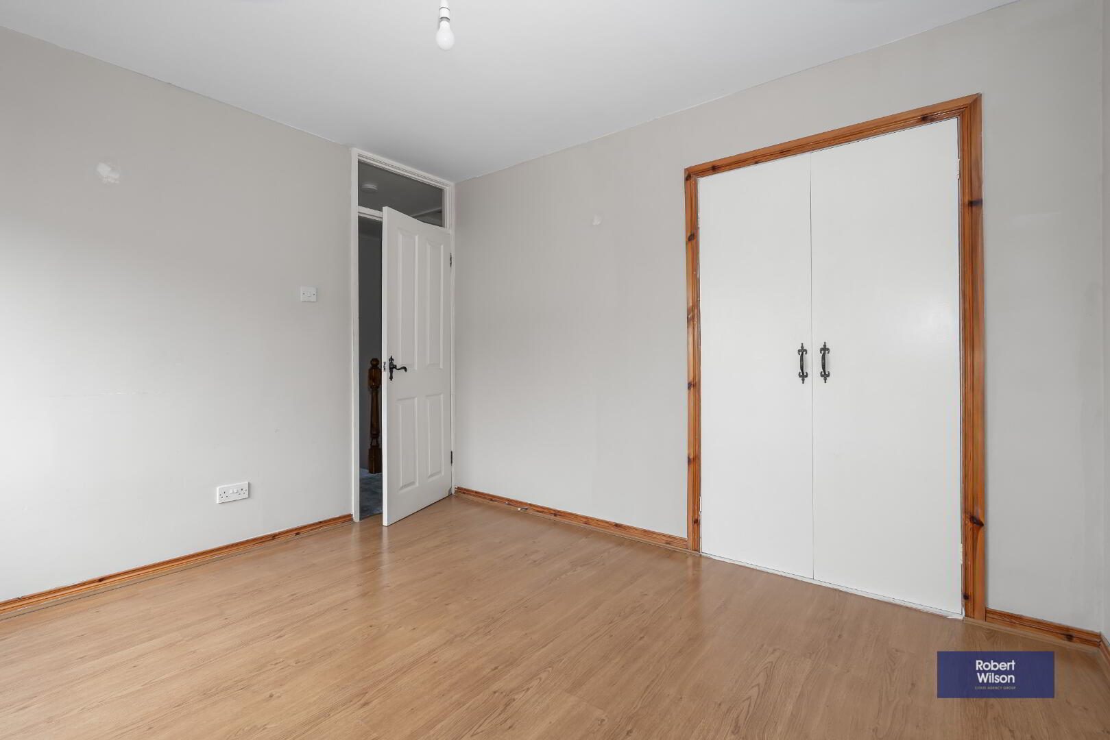 Upstairs, the property boasts three well-proportioned bedrooms, all benefiting from built-in wardrobes. The modern family bathroom has been tastefully refurbished and includes a panel bath with thermostatic shower over, wall-mounted wash hand basin, and low flush WC.