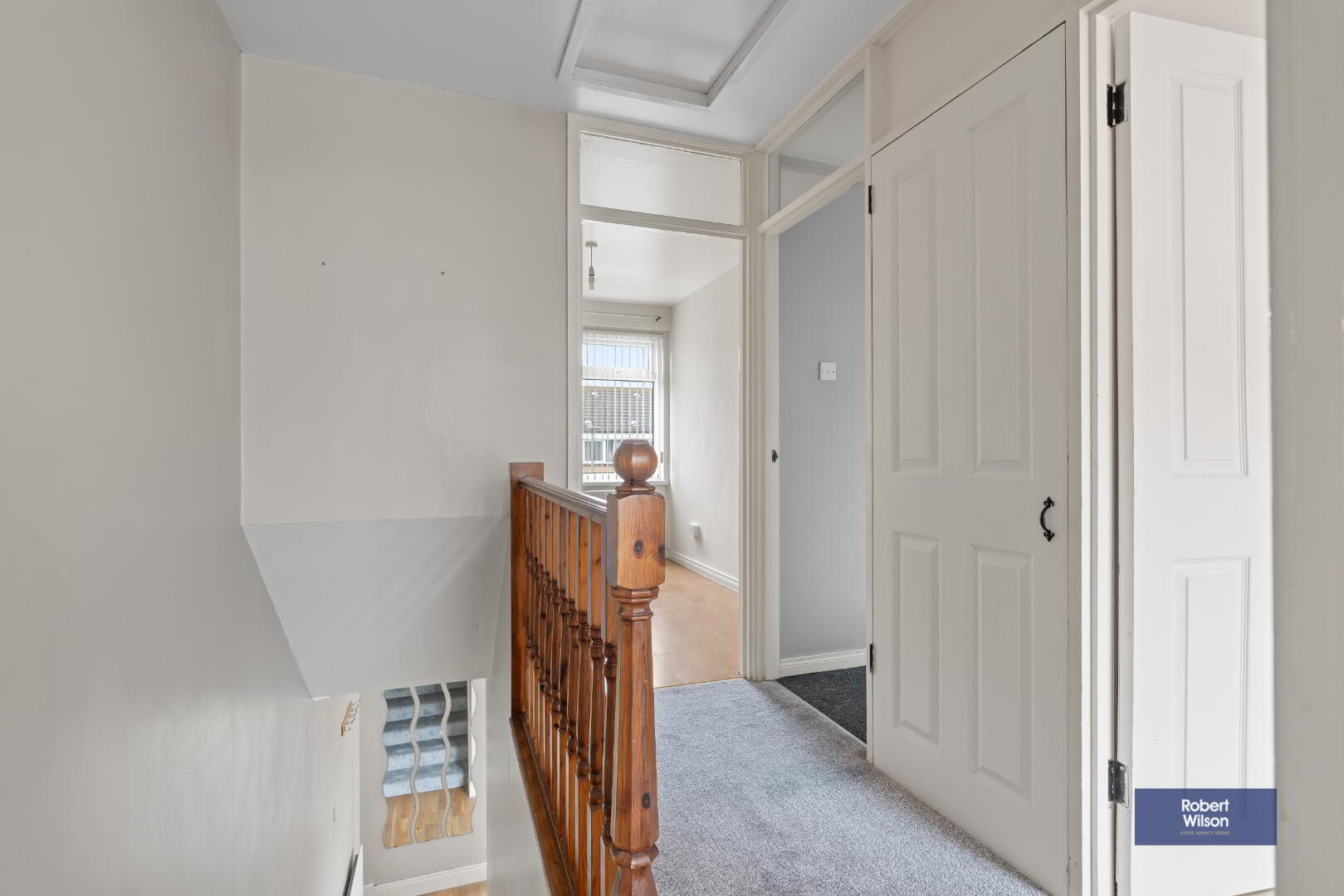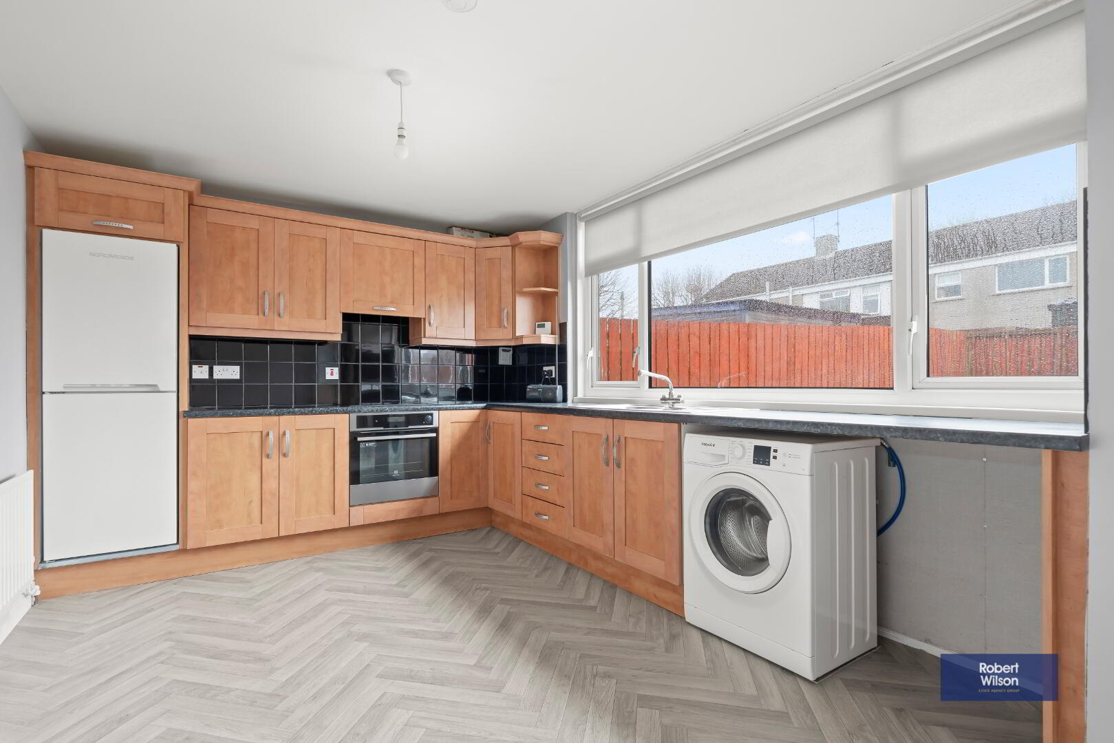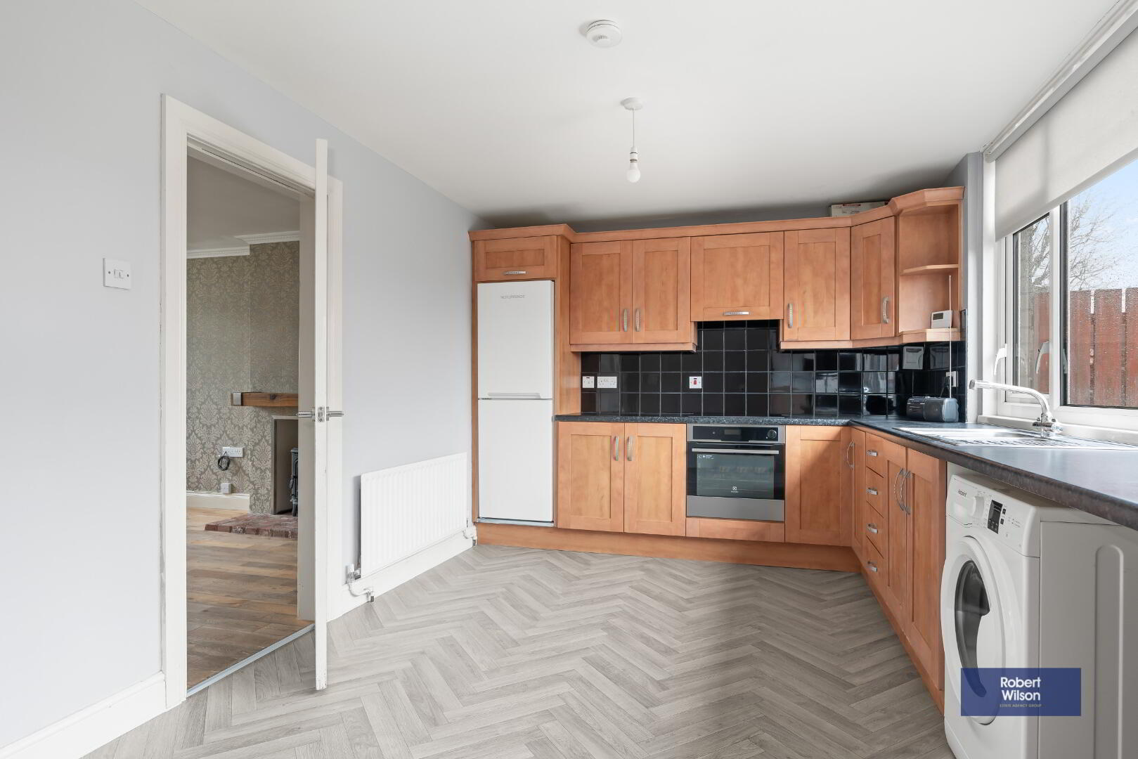 Upstairs, the property boasts three well-proportioned bedrooms, all benefiting from built-in wardrobes. The modern family bathroom has been tastefully refurbished and includes a panel bath with thermostatic shower over, wall-mounted wash hand basin, and low flush WC.