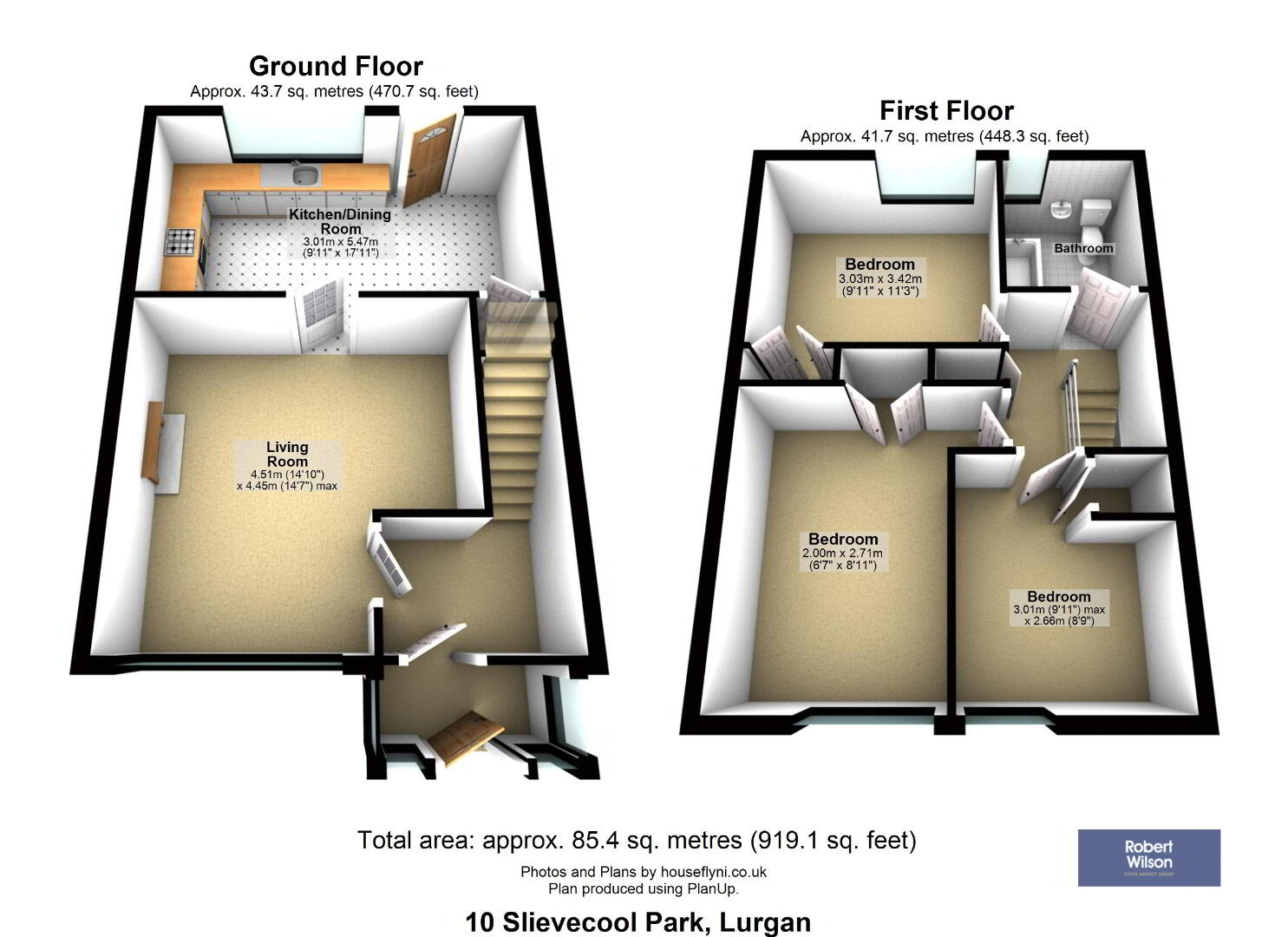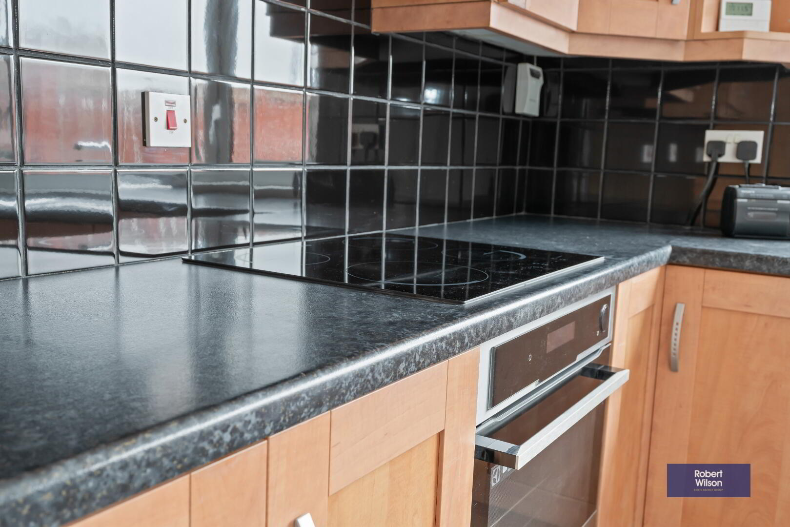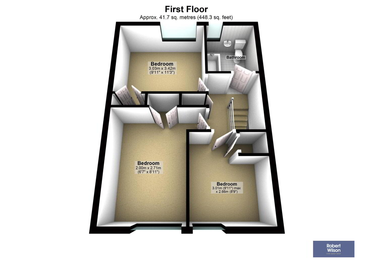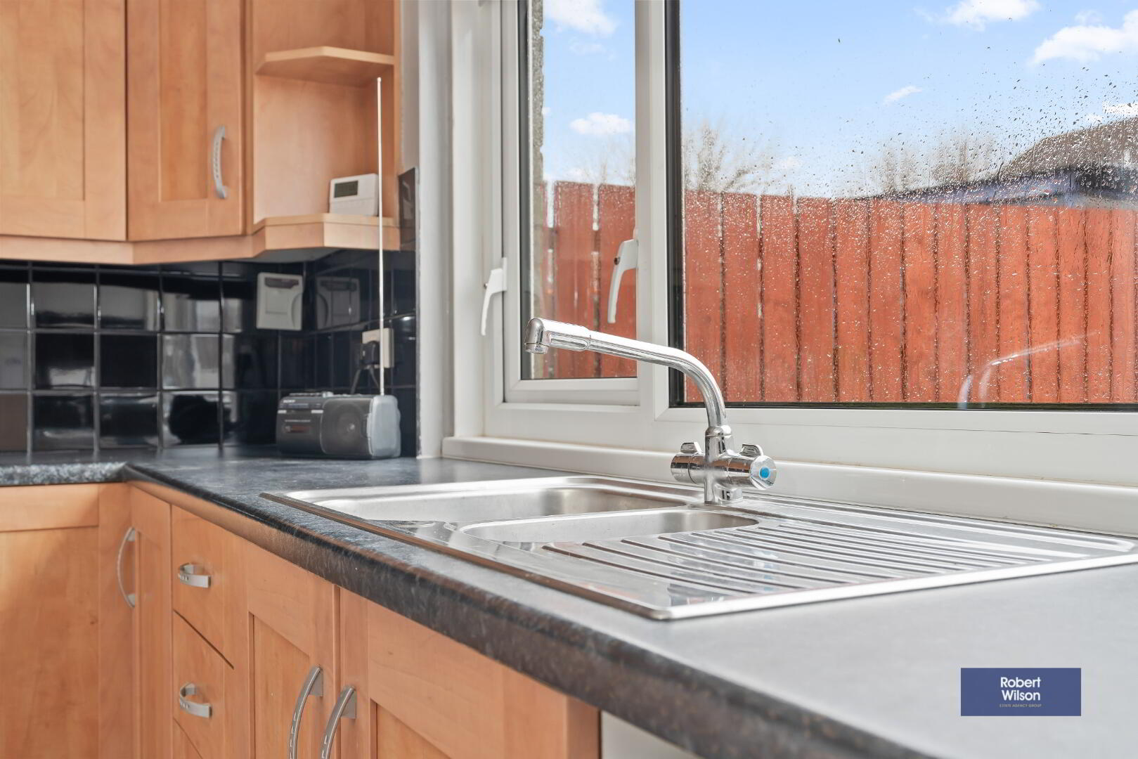 Upstairs, the property boasts three well-proportioned bedrooms, all benefiting from built-in wardrobes. The modern family bathroom has been tastefully refurbished and includes a panel bath with thermostatic shower over, wall-mounted wash hand basin, and low flush WC.