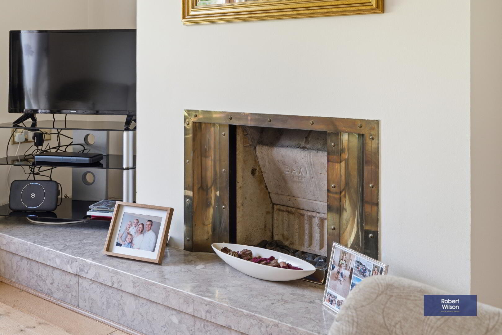 Solid wooden flooring, double panel radiator, raised marble hearth housing open fire.