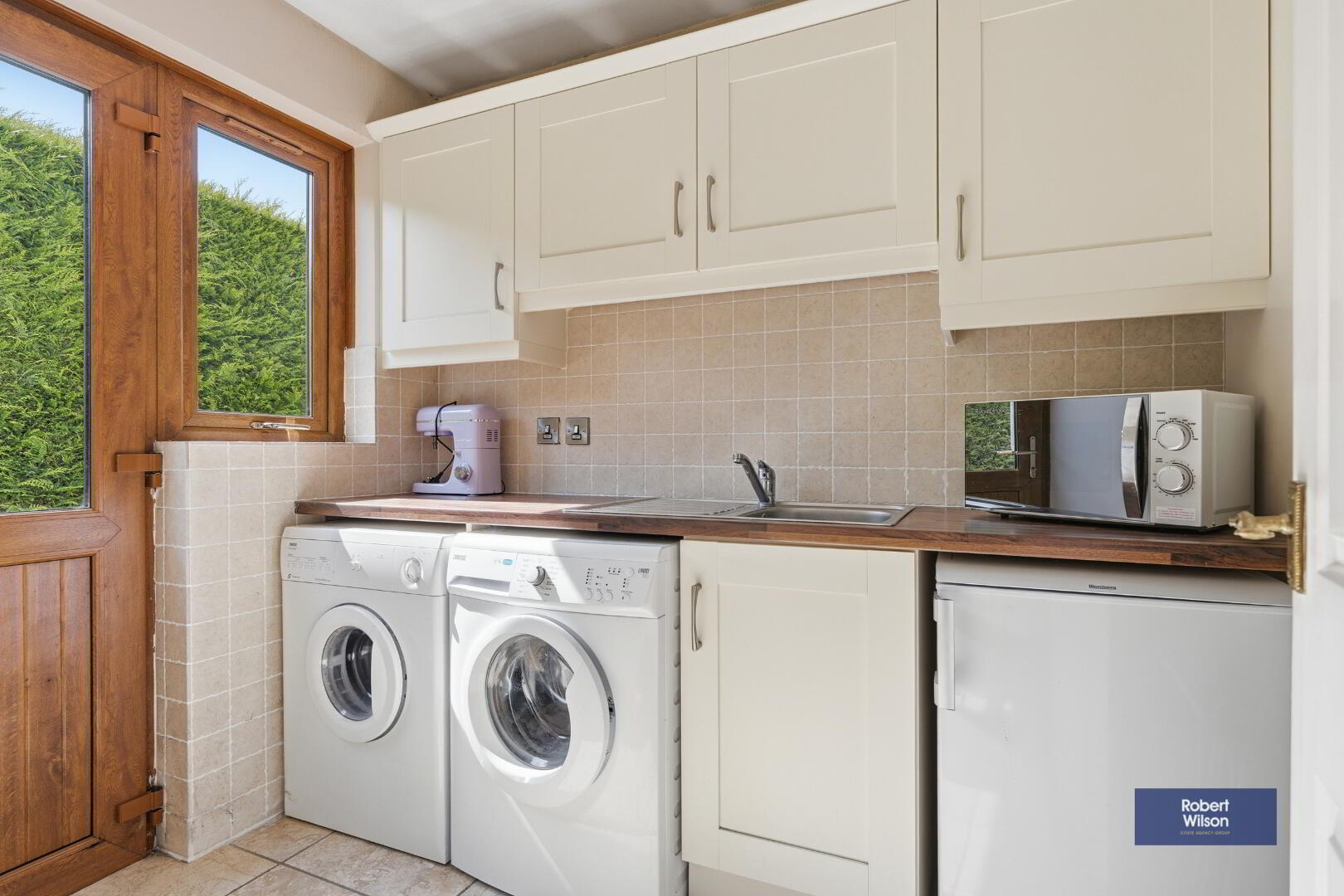 Internally, the home boasts a bright and spacious living room, a separate lounge, and a dedicated dining room—providing excellent versatility for both everyday living and entertaining. The kitchen is thoughtfully designed with a breakfast bar and is complemented by a practical utility room. A three piece shower room & three well-appointed bedrooms complete the accommodation.