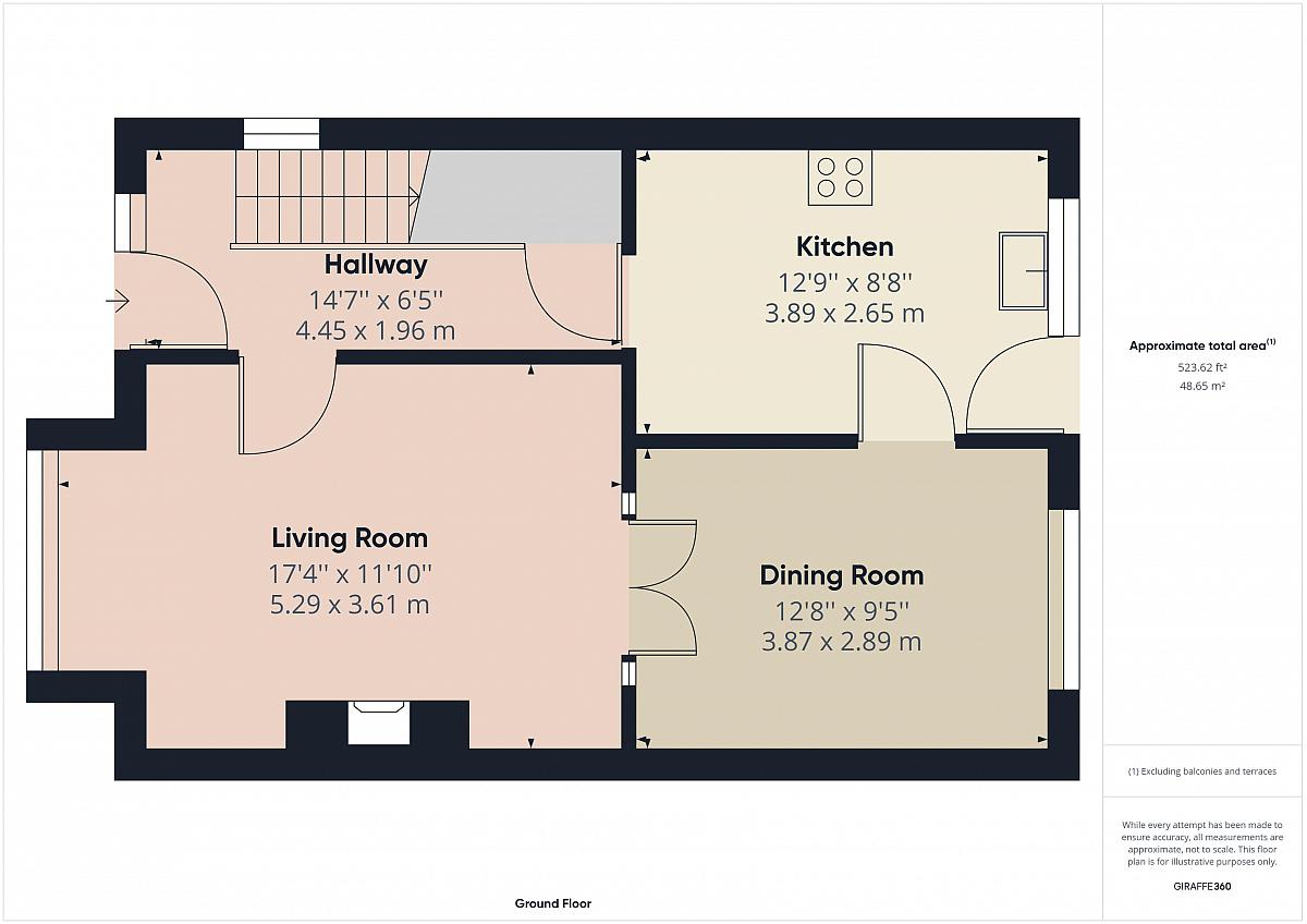 Via glazed door. Wooden flooring. Single panel radiator. Under stair storage. Staircase leading to first floor.
