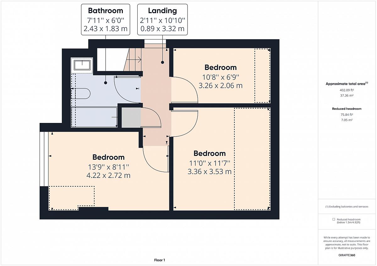 First Floor Landing 2'11" X 10'11" (0.89m X 3.33m)
