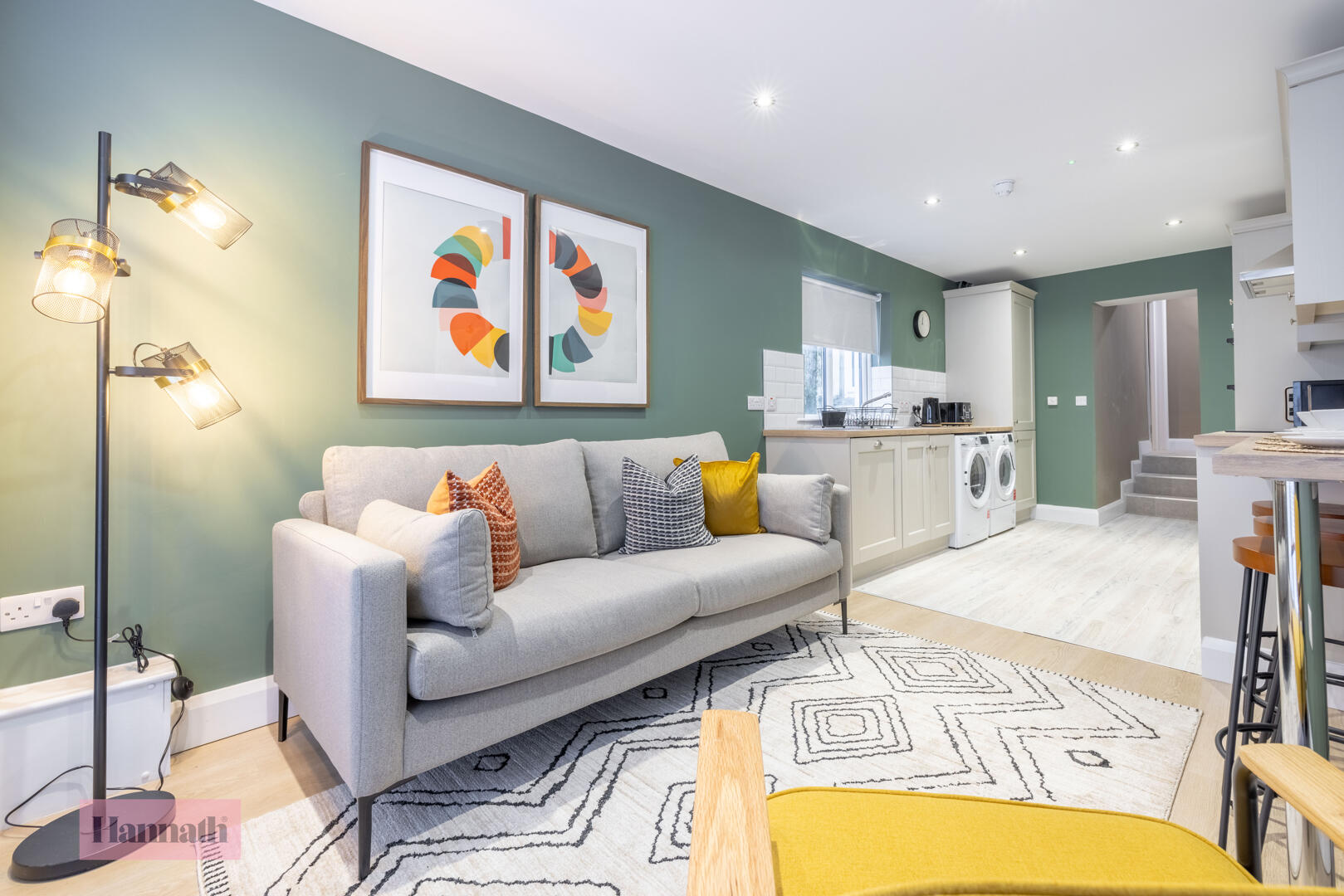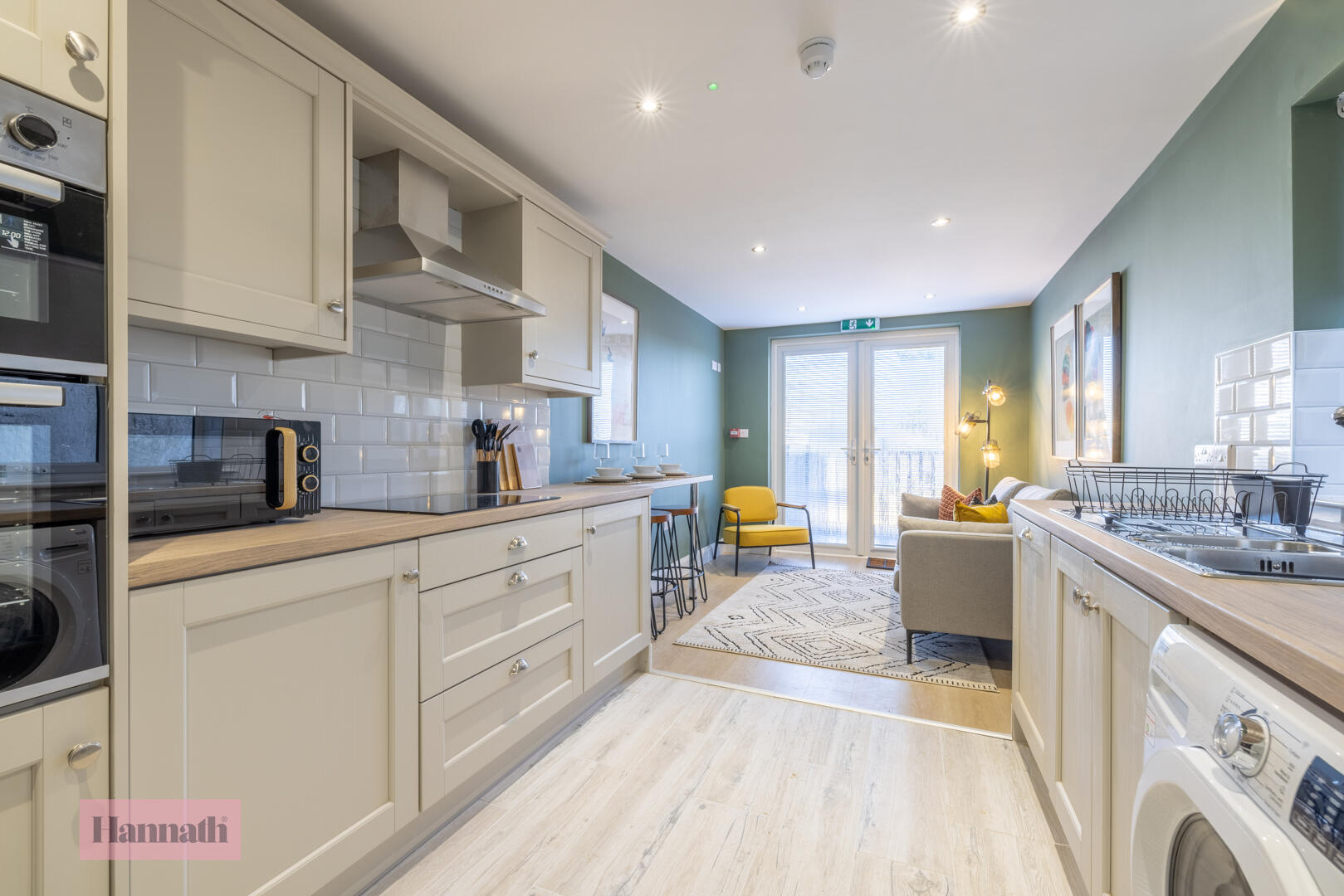 The interior of the property boasts a contemporary design, featuring a spacious common area that encourages social interaction among residents. The modern kitchen is well-equipped, and the presence of two shower rooms ensures convenience for all occupants. The living room and kitchen/dining area serve as perfect spaces to unwind after a busy day, fostering a sense of community within the house.