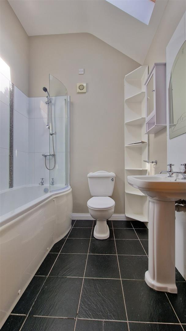 Modern Bathroom With P Shaped Bath And Power Shower