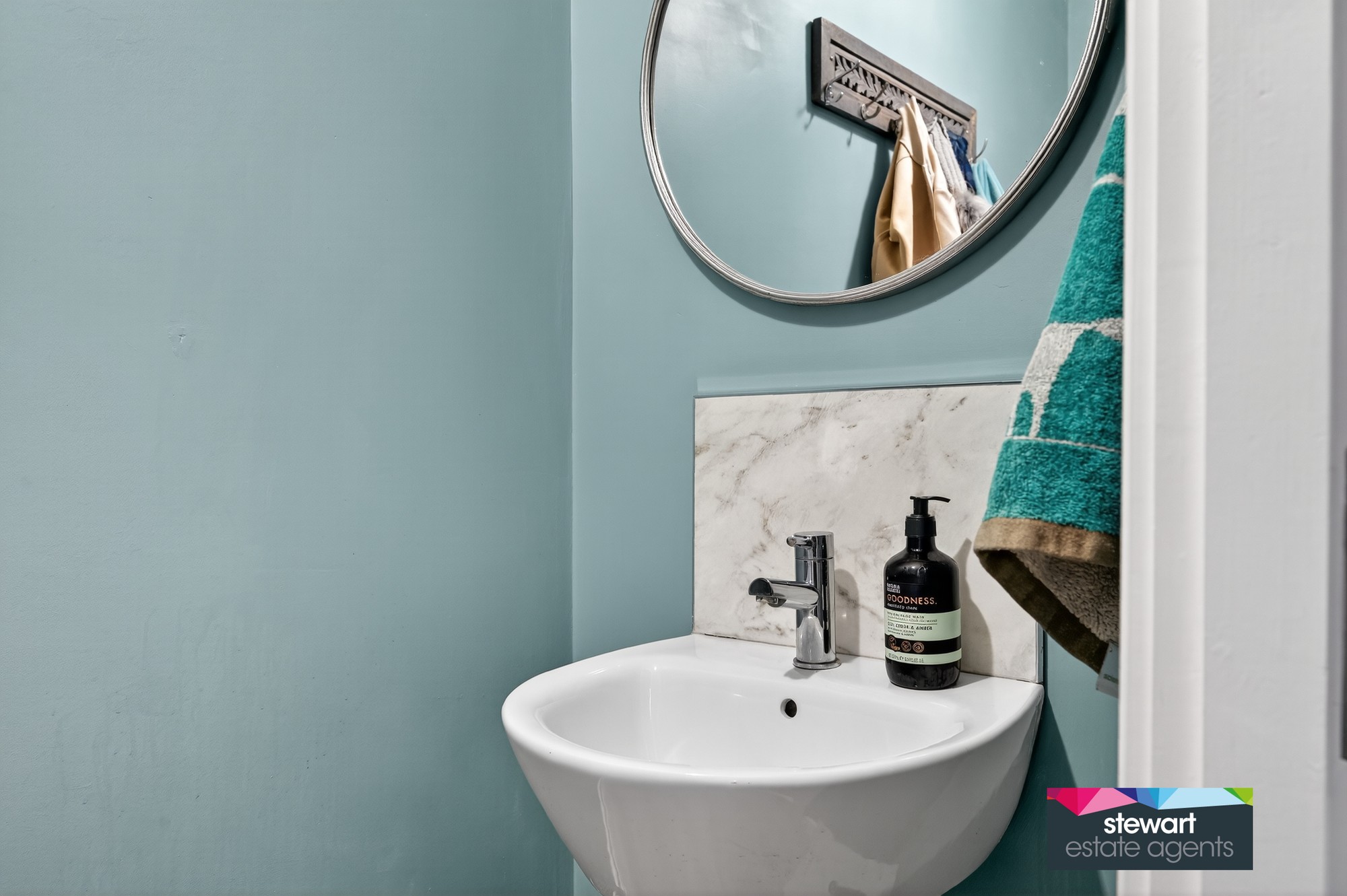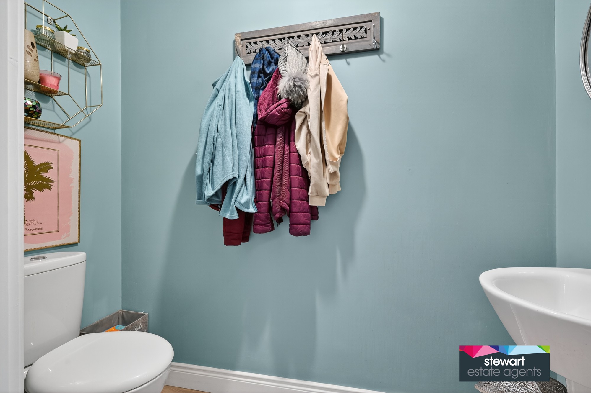 Beautifully designed and fitted kitchen cabinetry with a generous range of high and low level storage cupboards including a built in oven, inset hob and extractor fan above. Integrated fridge/freezer, integrated dishwasher, space for a washing machine