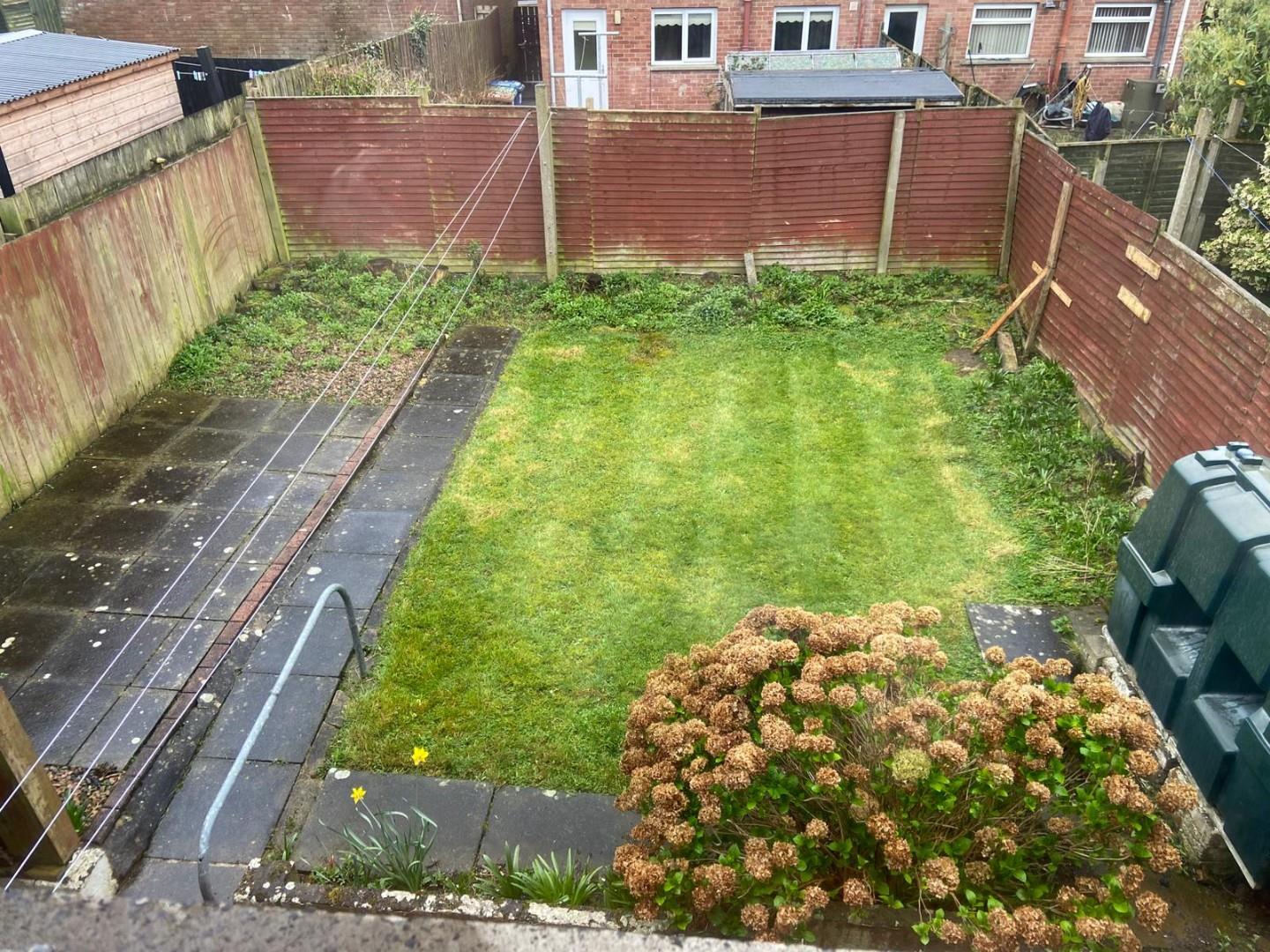 Enclosed Rear Garden With Lawn, Partly Paved Area And Shed