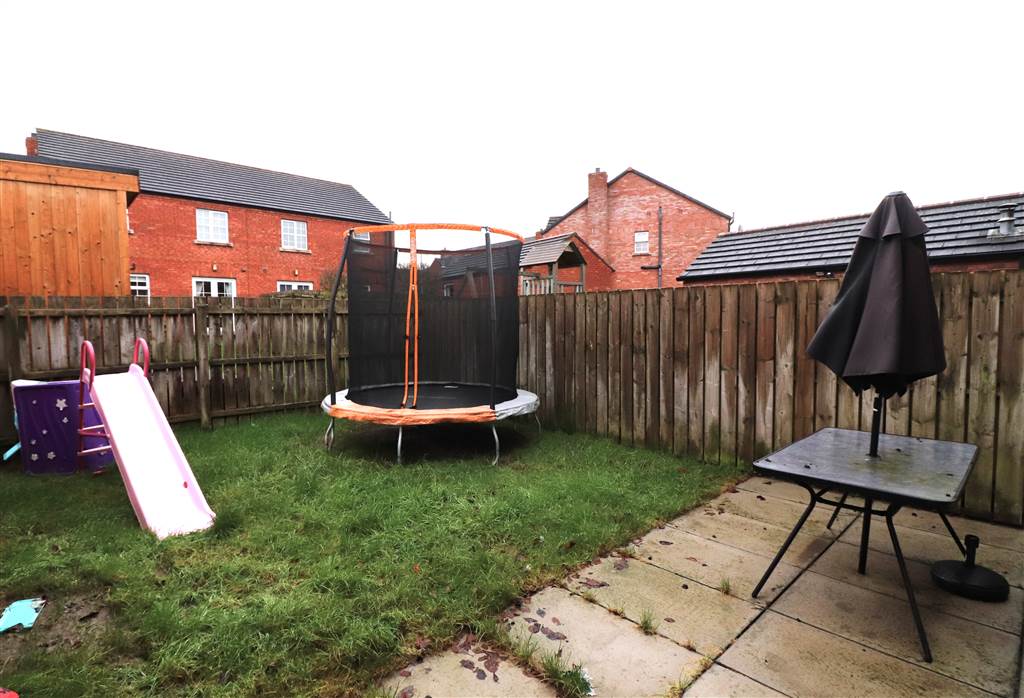 Front garden in lawn. Tarmac driveway. Completely enclosed rear garden in lawn with paved patio area. Outside light and tap.