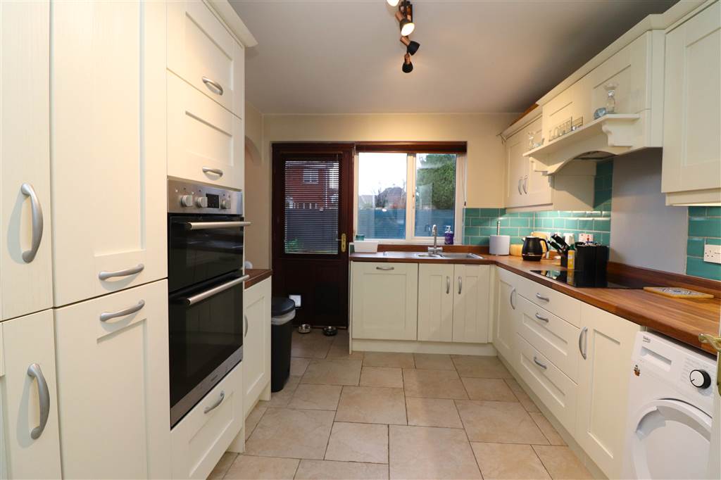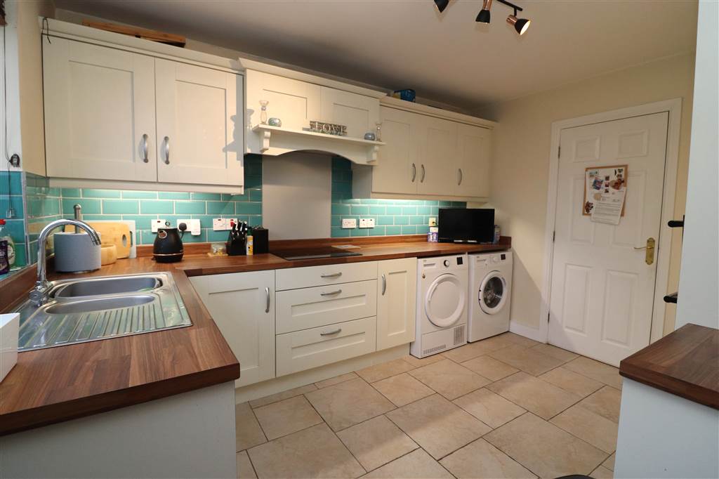 Excellent range of high and low level units. One and a half bowl stainless steel sink unit with mixer taps. Built in hob and double oven. Extractor fan. Integrated fridge/freezer. Plumbed for washing machine. Glazed display cabinets. Tiled floor. Part tiled walls. Pull out larder unit. Understrip lighting.