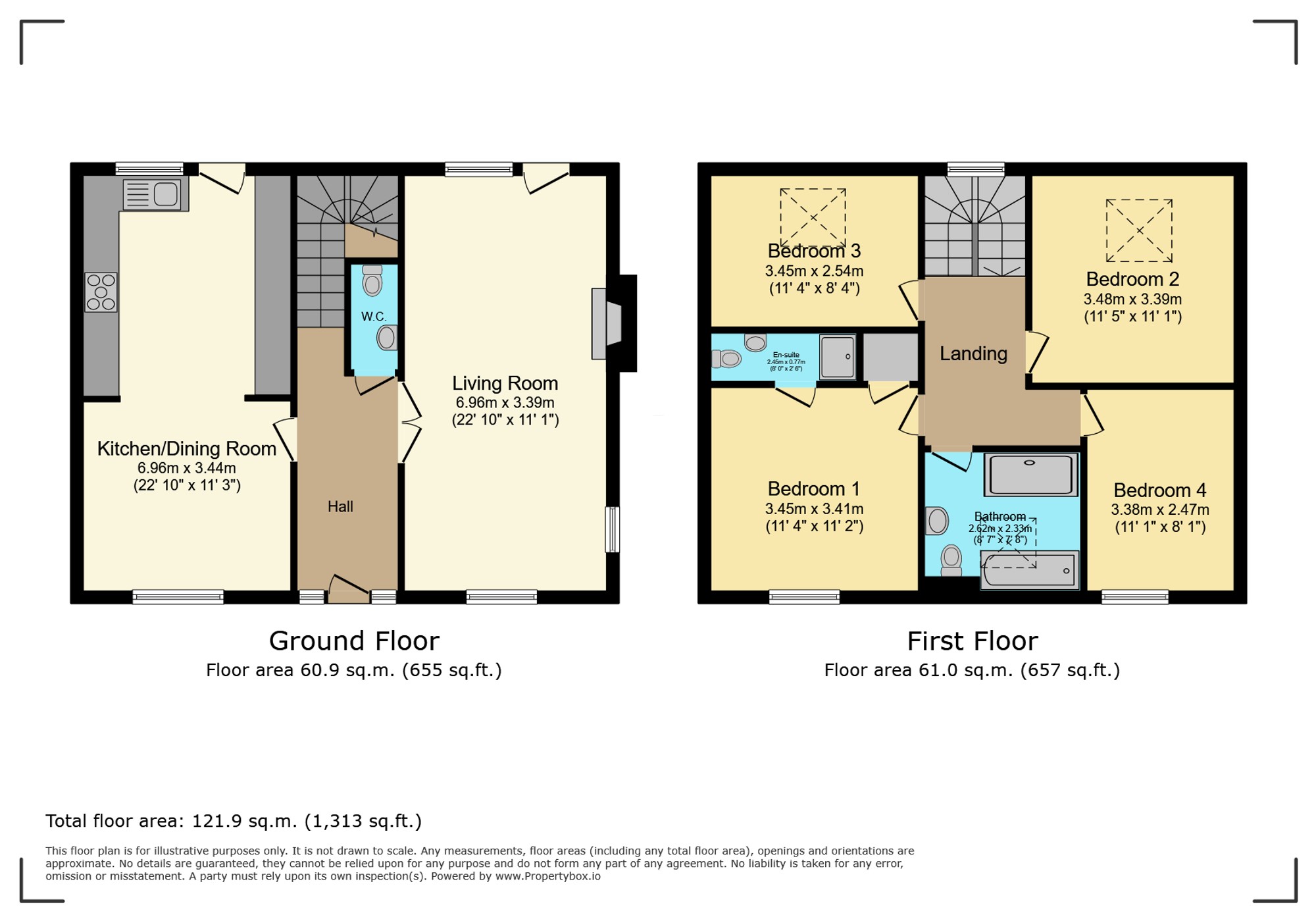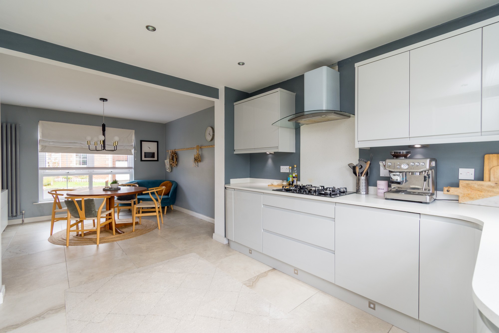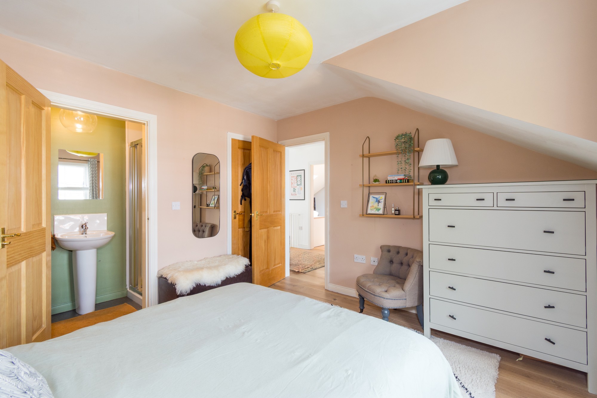 Accommodation comprises: covered Entrance Porch, entrance hall, spacious living room, kitchen/dining area, downstairs cloakroom, first floor landing, 4 bedrooms (bedroom 1 with ensuite) and family bathroom.