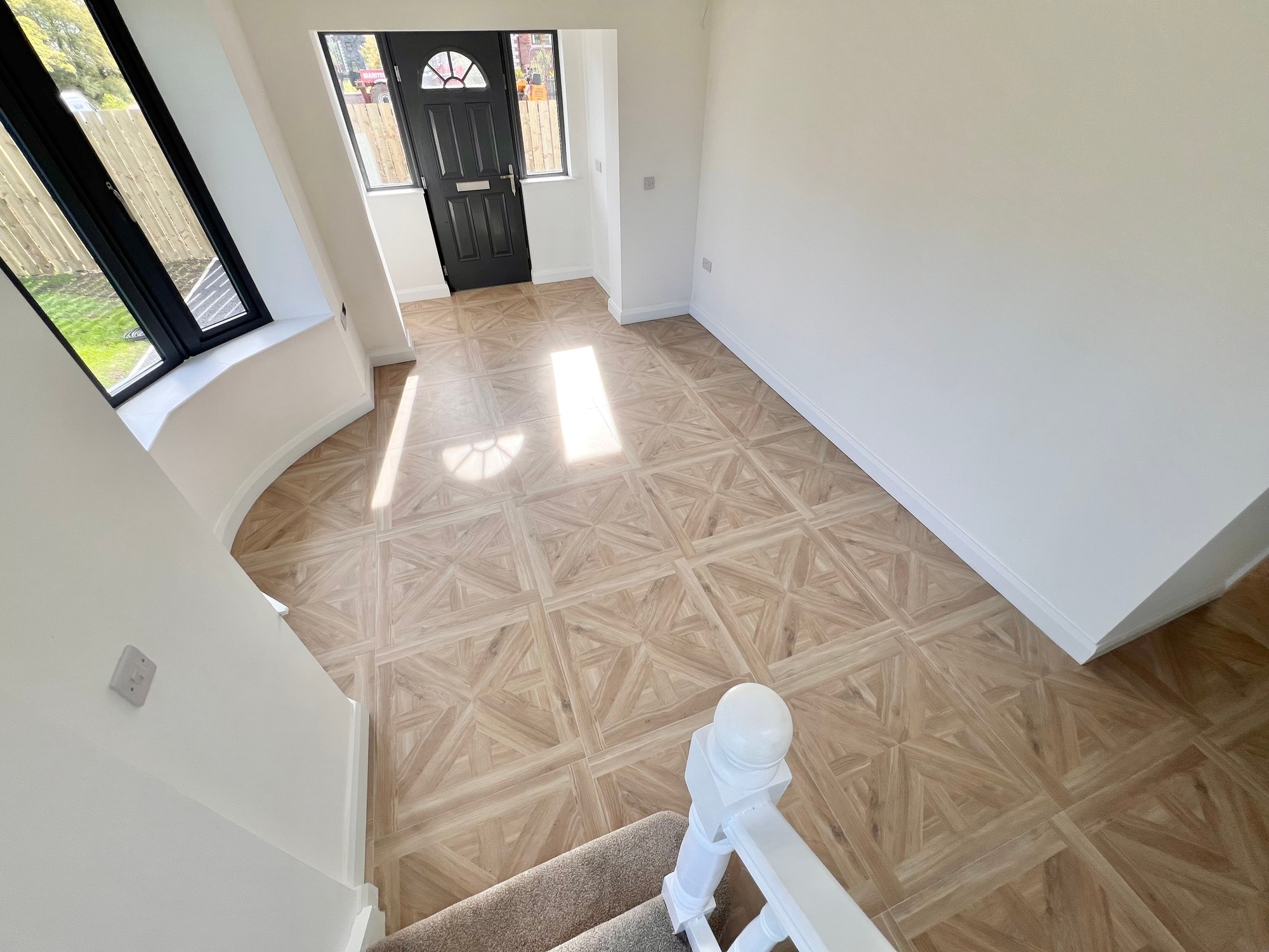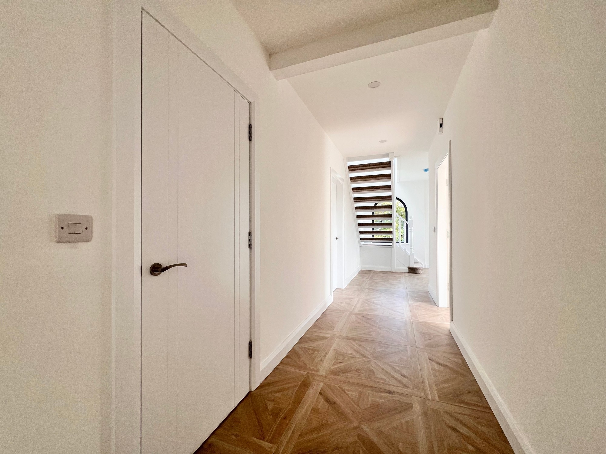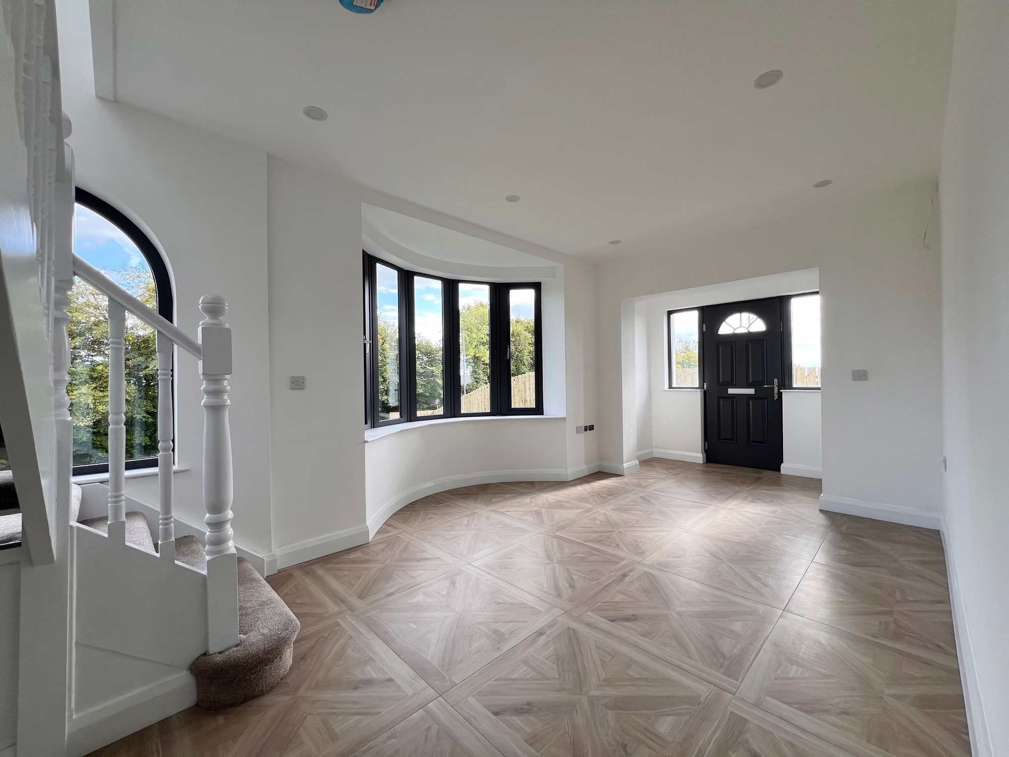 Entrance Hall - Spacious entrance hall with tiled floor, recessed lights, storage cupboard, bay window.