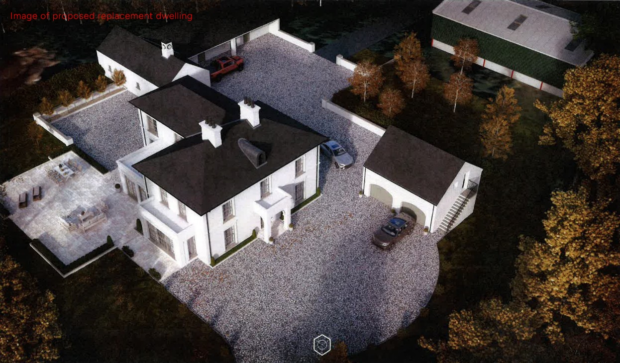 In addition there is full planning permission for a replacement 5 bedroom dwelling with double garage