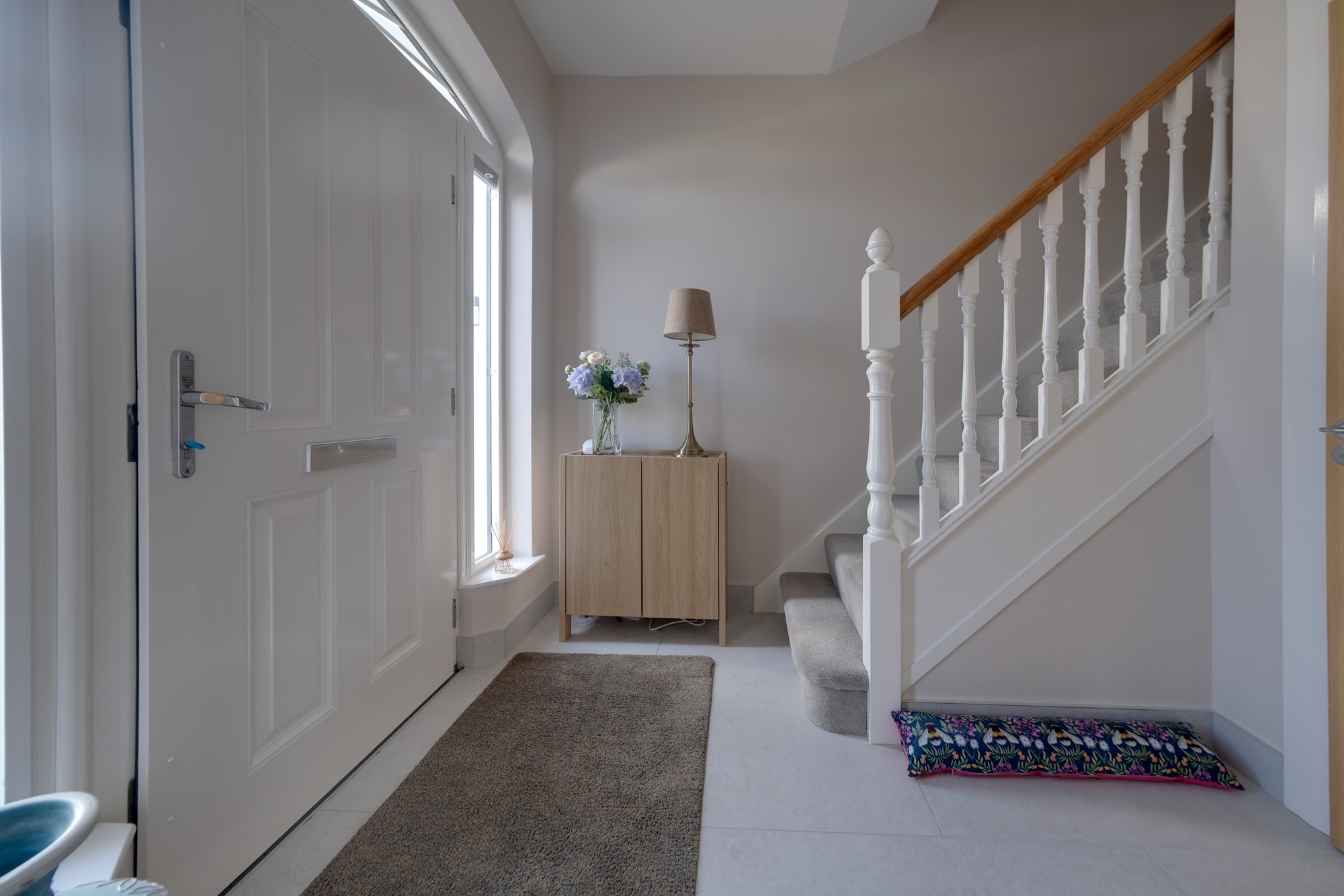 Entrance hall: Newly tiled with access to understairs storage and WC.