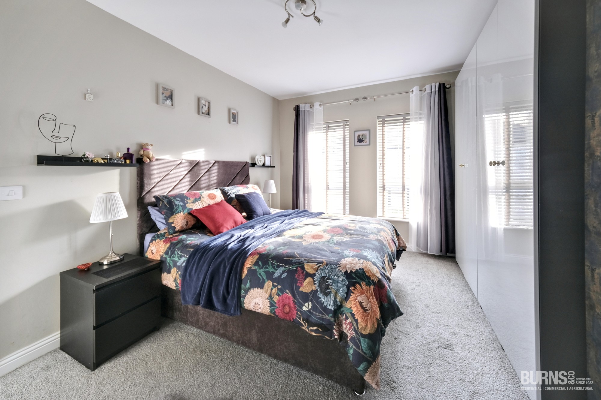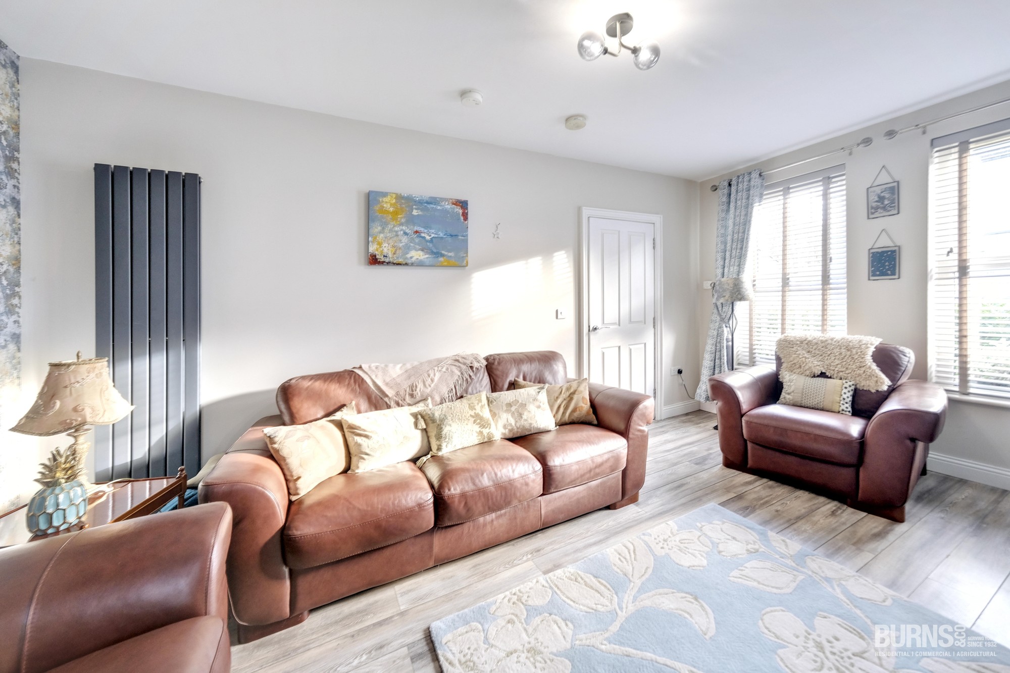 Laminate flooring, large windows giving this spacious room plenty of natural light.