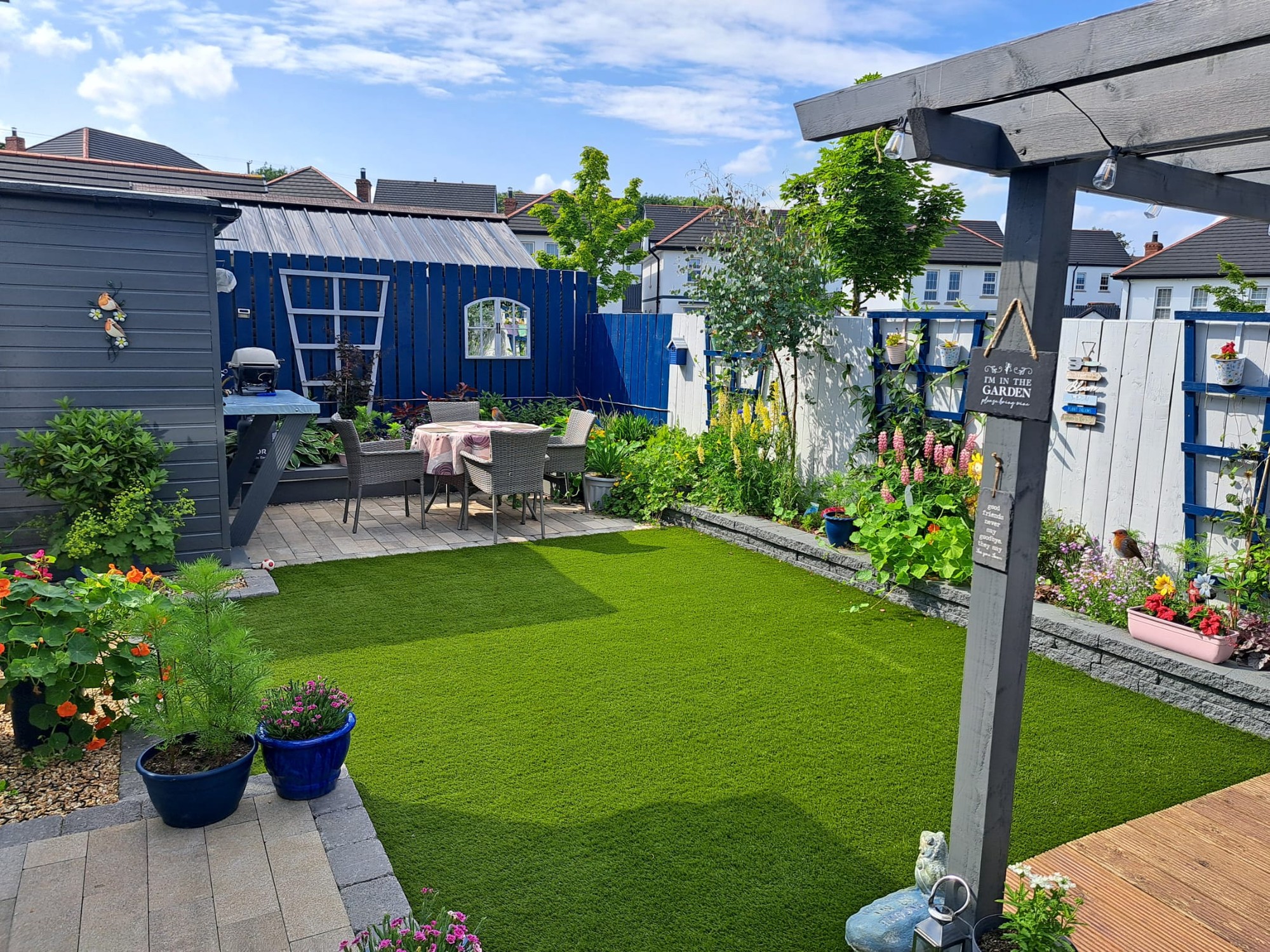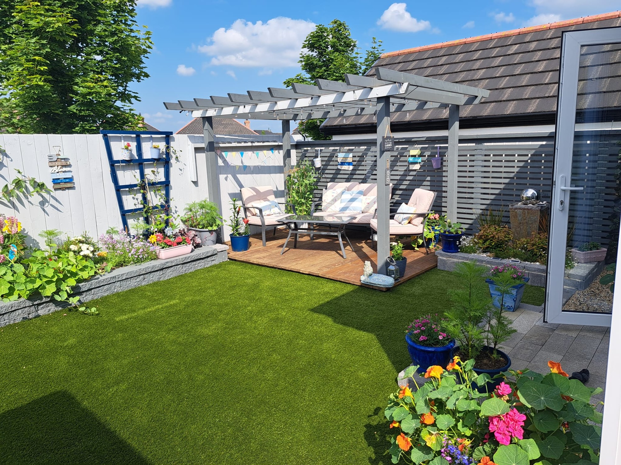 Step outside into a beautifully designed garden that perfectly balances style and practicality. The low-maintenance AstroTurf lawn provides a lush, year-round green space.