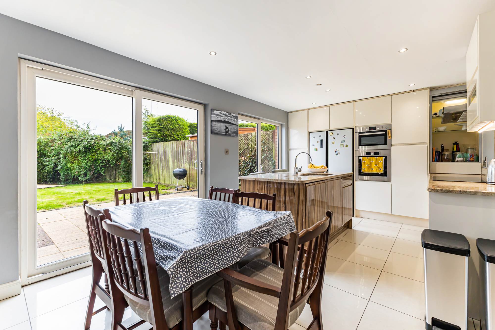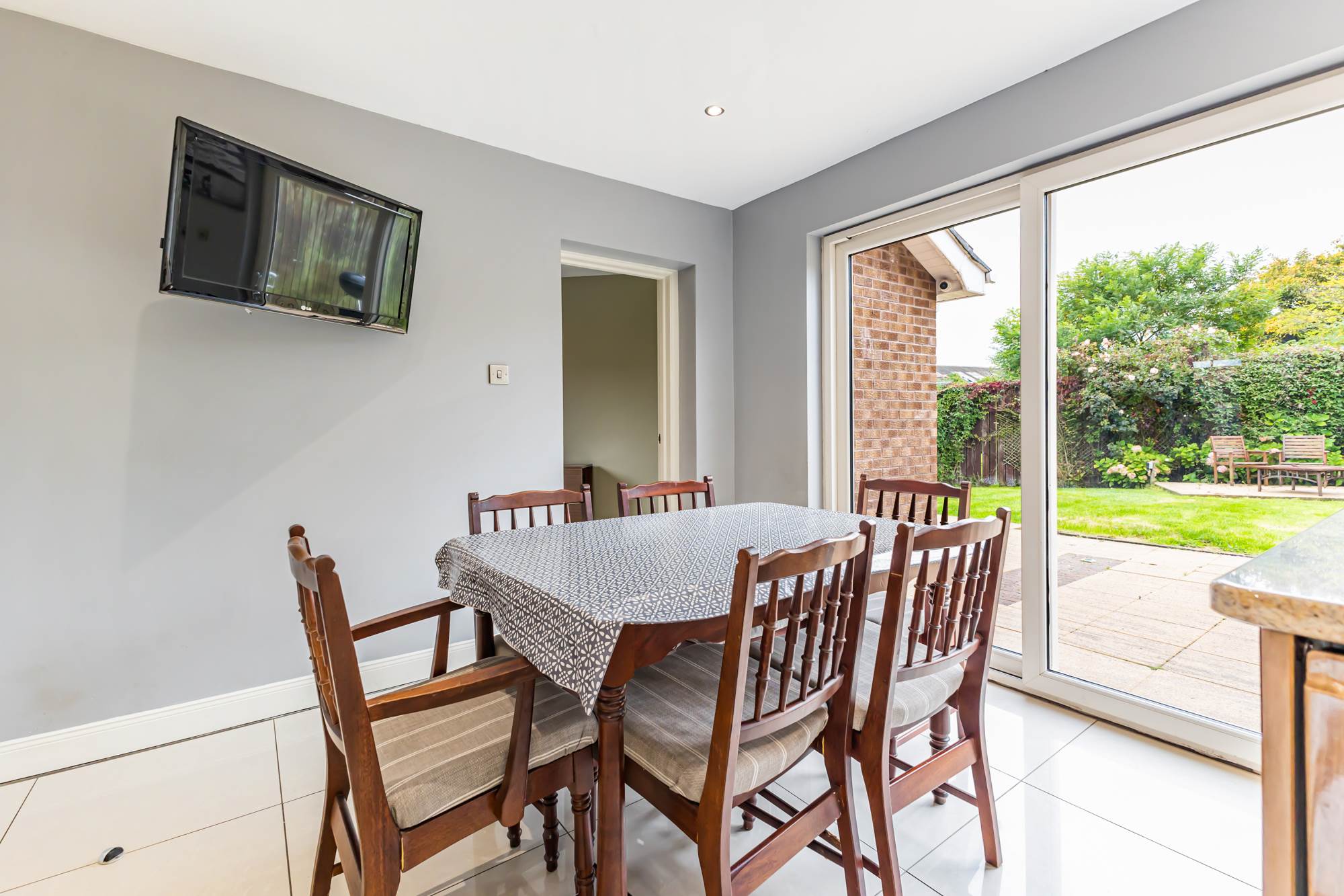 Gardens to the front in lawn, driveway parking for multiple cars, gardens and extended patio area to the rear