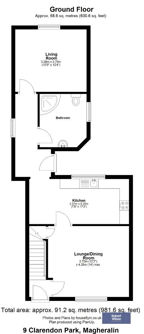 2.37m x 5.25m (7' 9" x 17' 3") Range of high and low level units, laminate worktop, stainless steel sink unit, double oven with hob and extractor over, part tiled walls, space for dishwasher and fridge freezer, 2x single panel radiator.