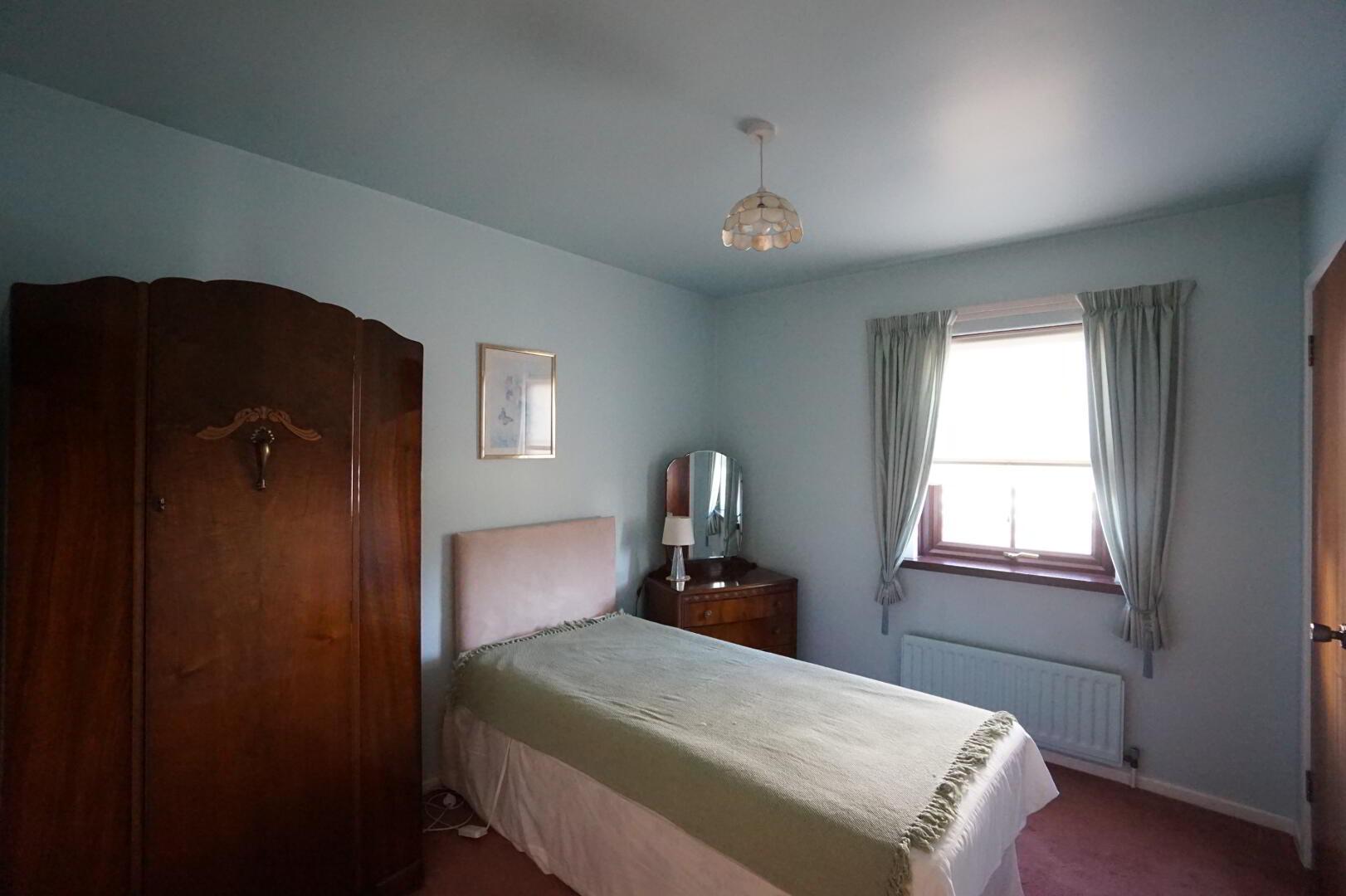 2.95m x 2.91m (9' 8" x 9' 7") Single panel radiator, built in storage.