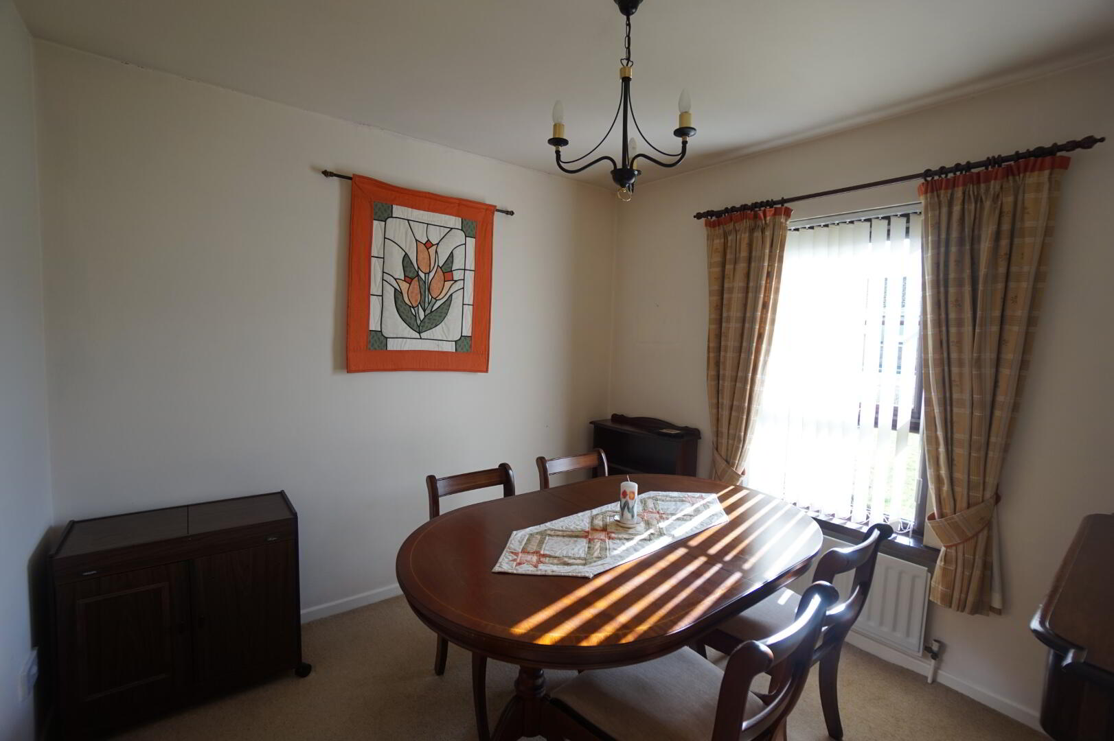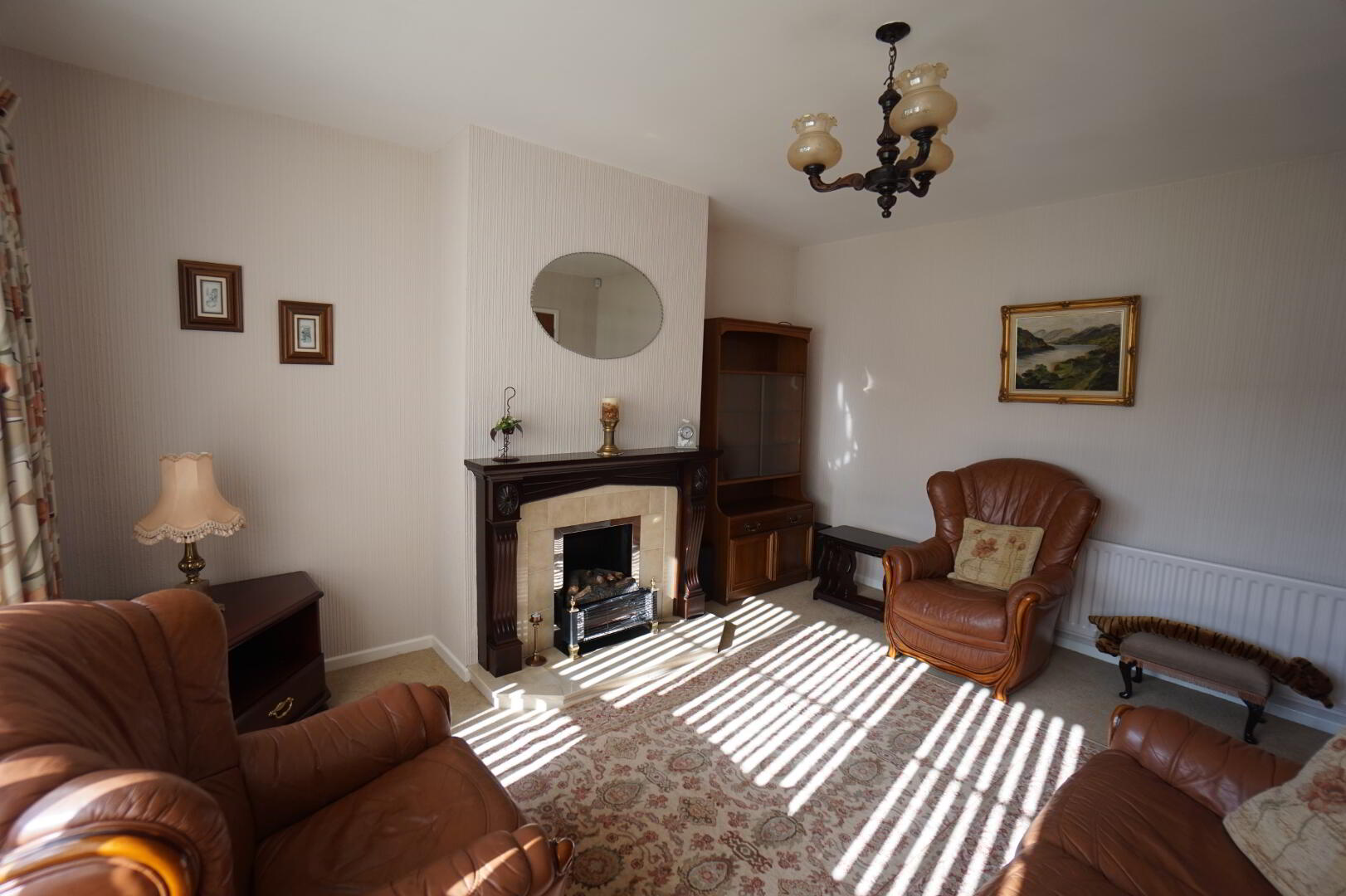 3.58m x 3.85m (11' 9" x 12' 8") Feature fireplace with mahogany surround, tiled inset and hearth, single panel radiator.