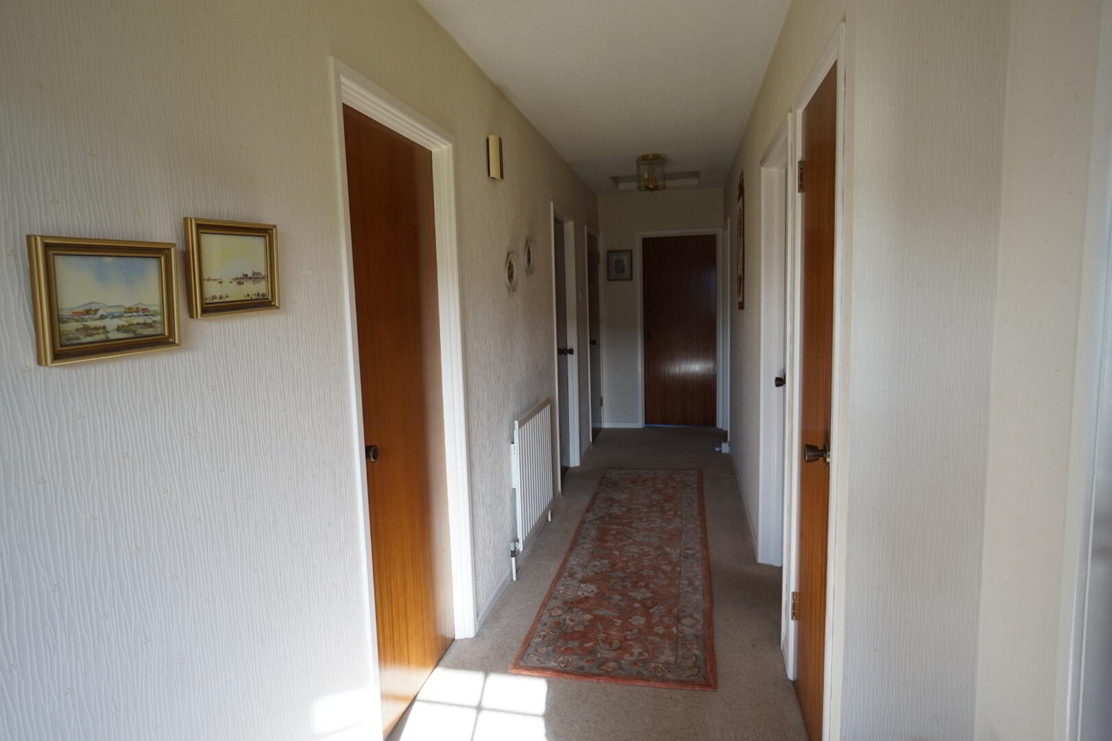 uPVC Front door with glazed panel and sidelight, cloakroom off, hotpress off , access to roofspace, single panel radiator.