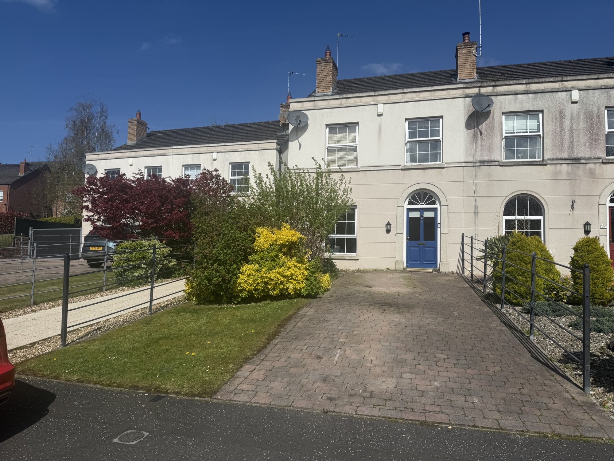 A beautiful modern end townhouse with brick paved driveway to the front and extensive enclosed rear garden in lawn.