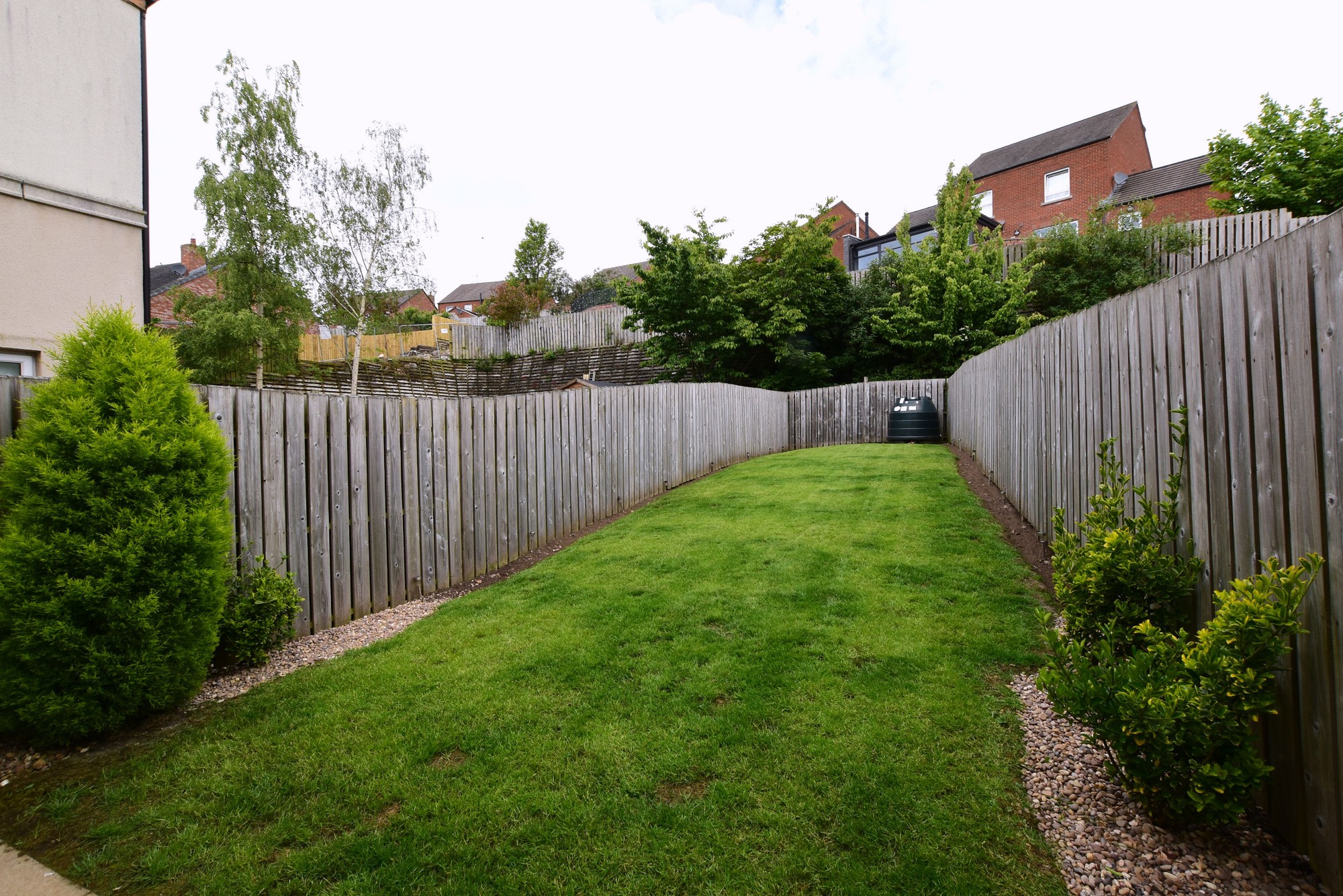 Extensive enclosed rear garden in lawn.