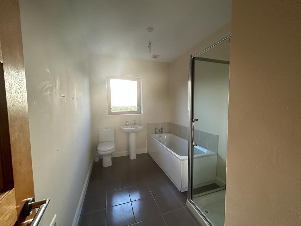 Comprising of bath, walk in shower, WHB, WC, tiled floor.
