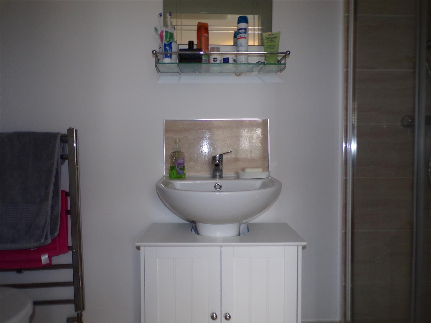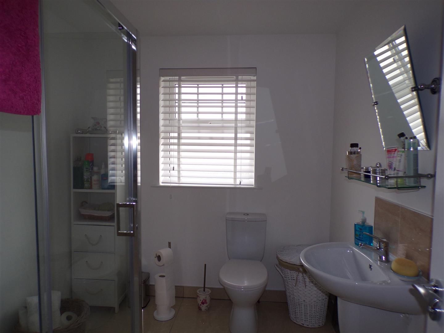 Comprising of fully tiled walk in shower, WHB, WC, tiled floor.
