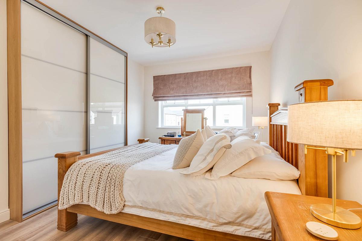 (11'11' x 11'1' & 4'3' x 3'7') Fitted sliderobes with mirrored doors, laminated floor.