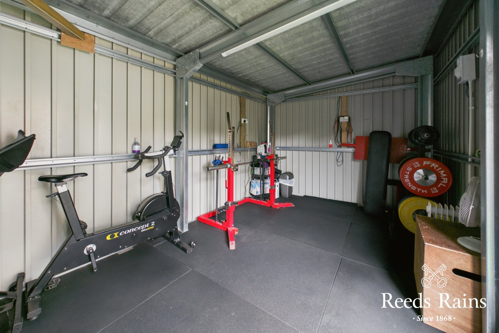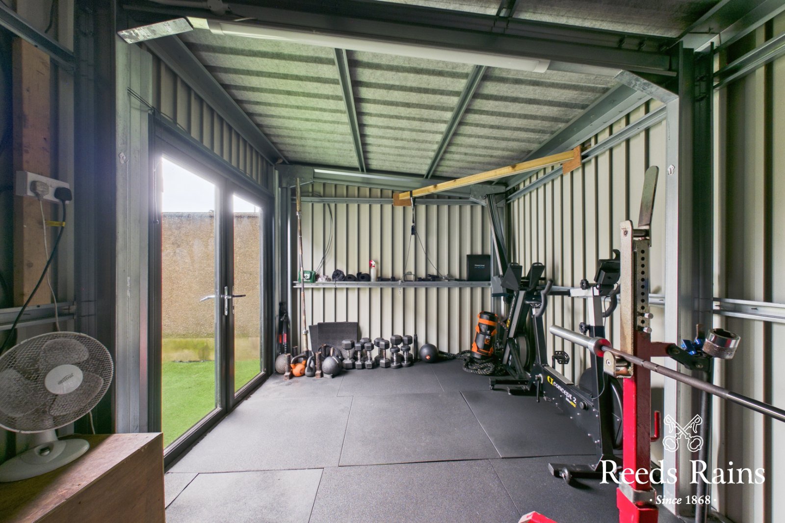 Complete with imitation lawn and paved patio area. Fixed outhouse with electrical points. Ideal for home office / gym area.
