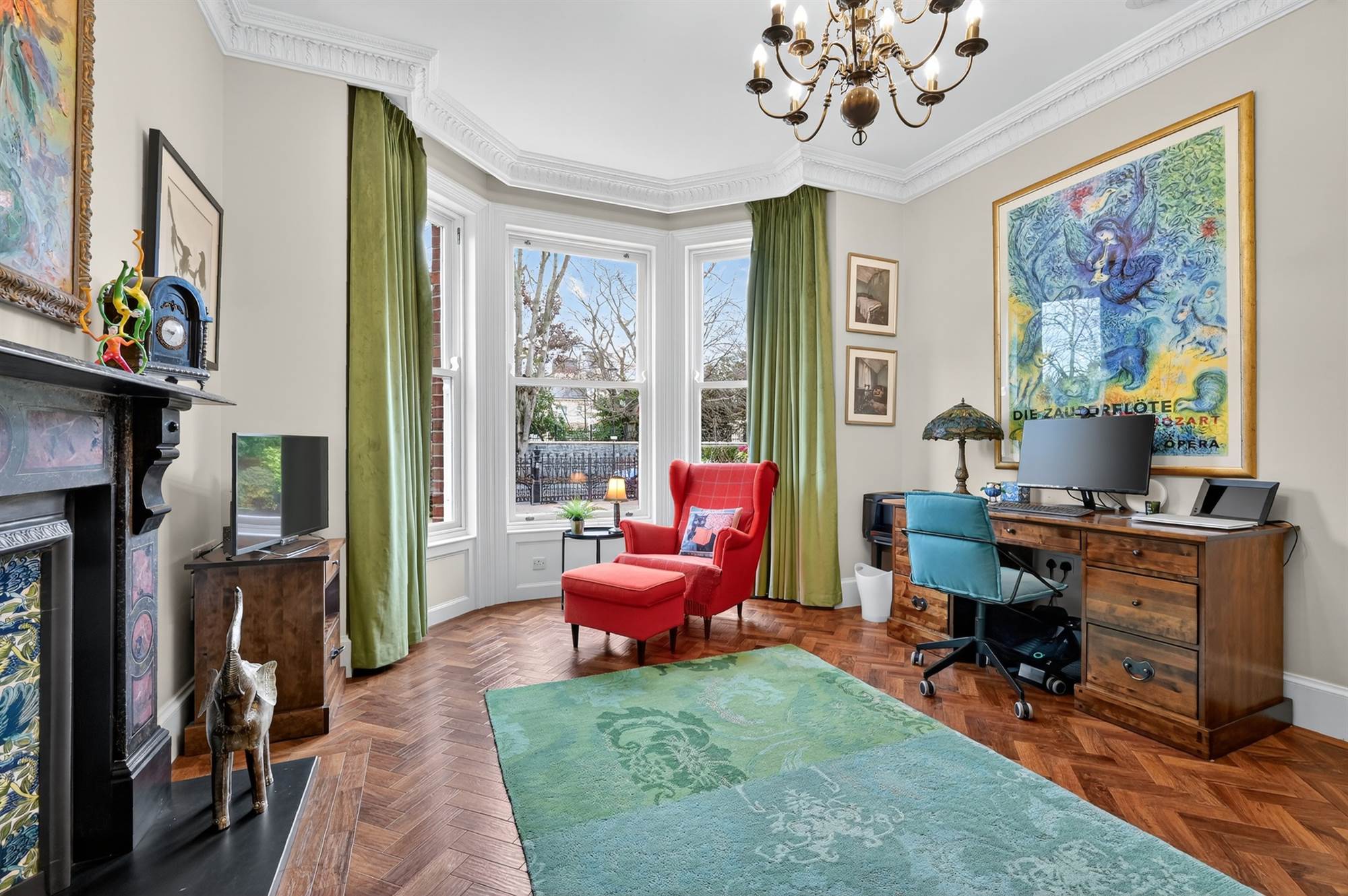 (into bay window). Walnut engineered wood flooring, cornice ceiling, ceiling rose. Radiator cover.
