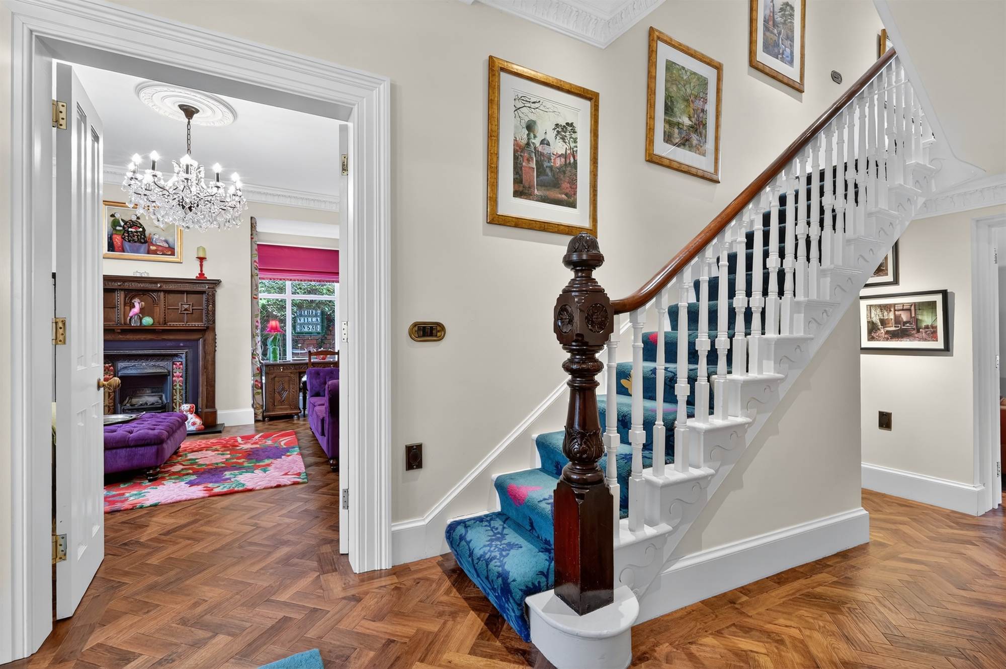 The property has substantial proportions with three separate reception rooms, good sized family kitchen with dining area and up to seven bedrooms. It is currently arranged as five bedrooms with two dressing rooms, a family bathroom and three further shower rooms, one of which is on the ground floor. The principal suite has an excellent sized bedroom, dressing room and hidden ensuite.