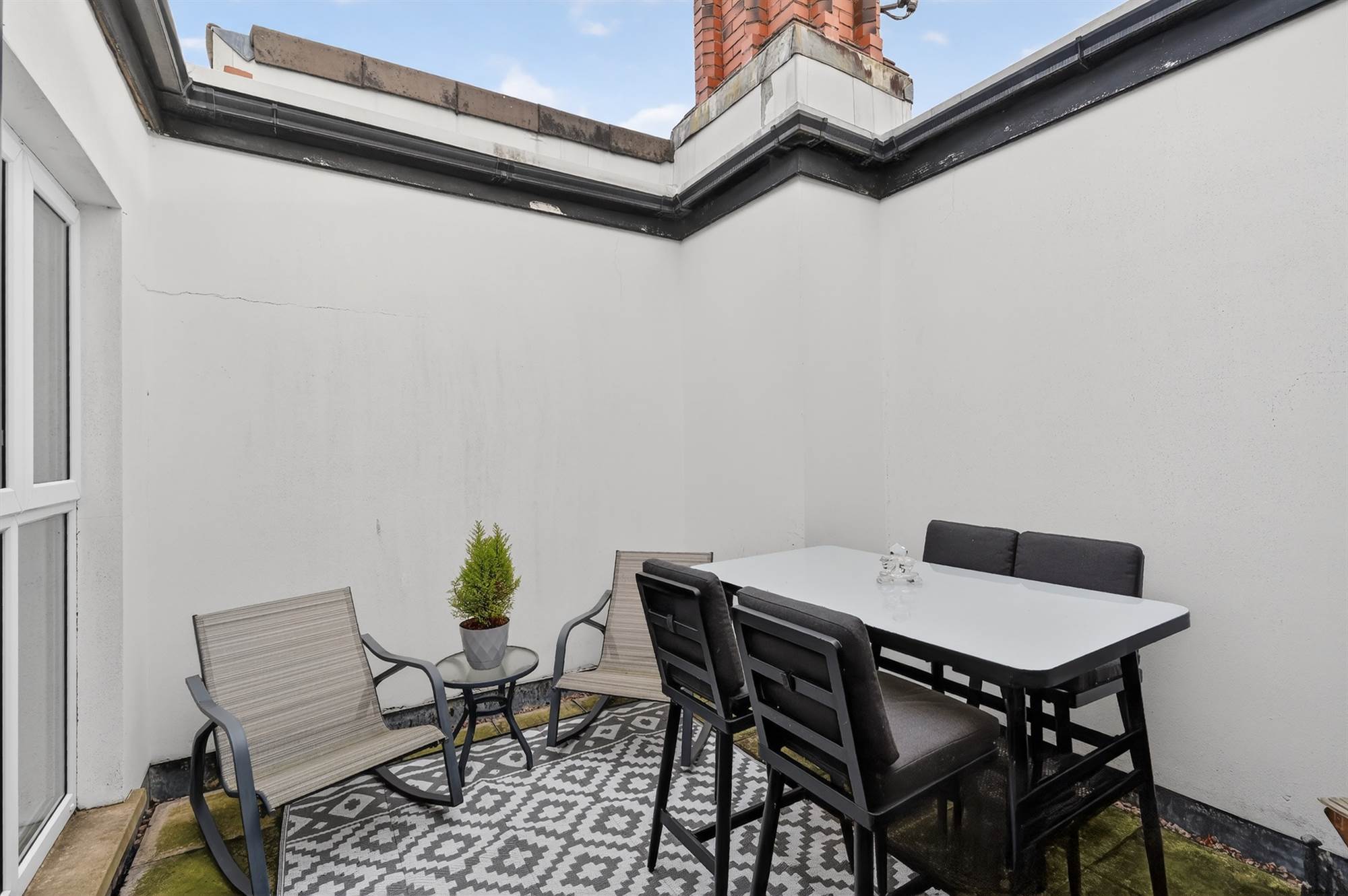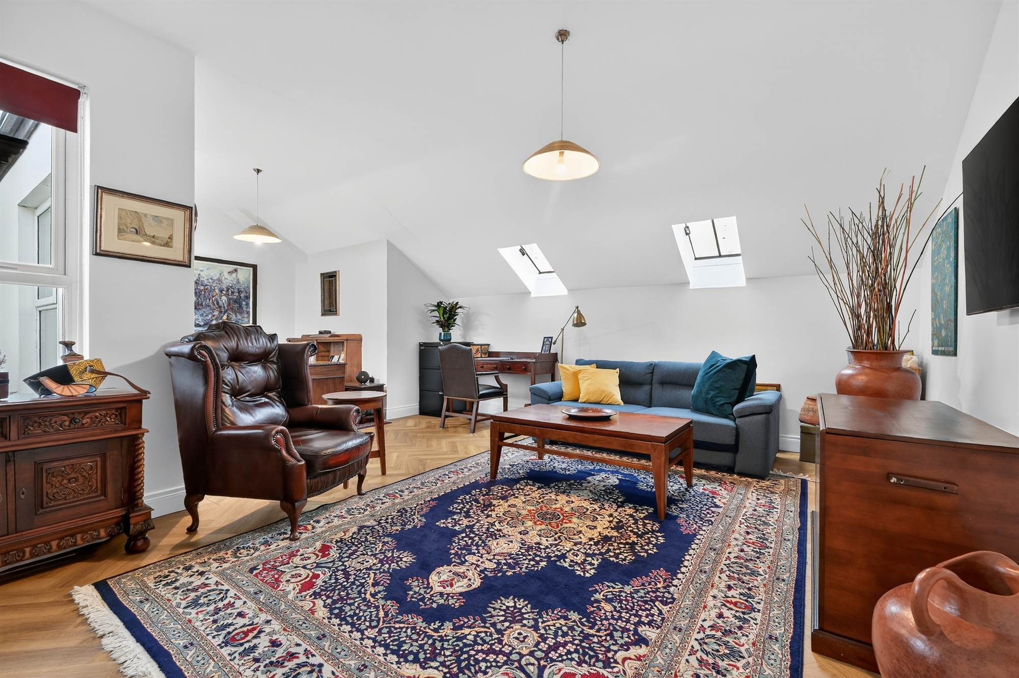 Luxurious vinyl oak herringbone style floor, two skylights offering more natural light, uPVC double glazed access door to roof terrace.